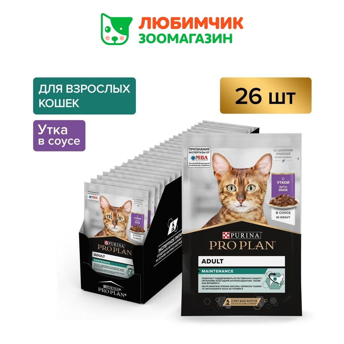 Pro Plan влажный корм для взрослых кошек всех пород, утка в соусе (26шт в уп) 85 гр, паучи