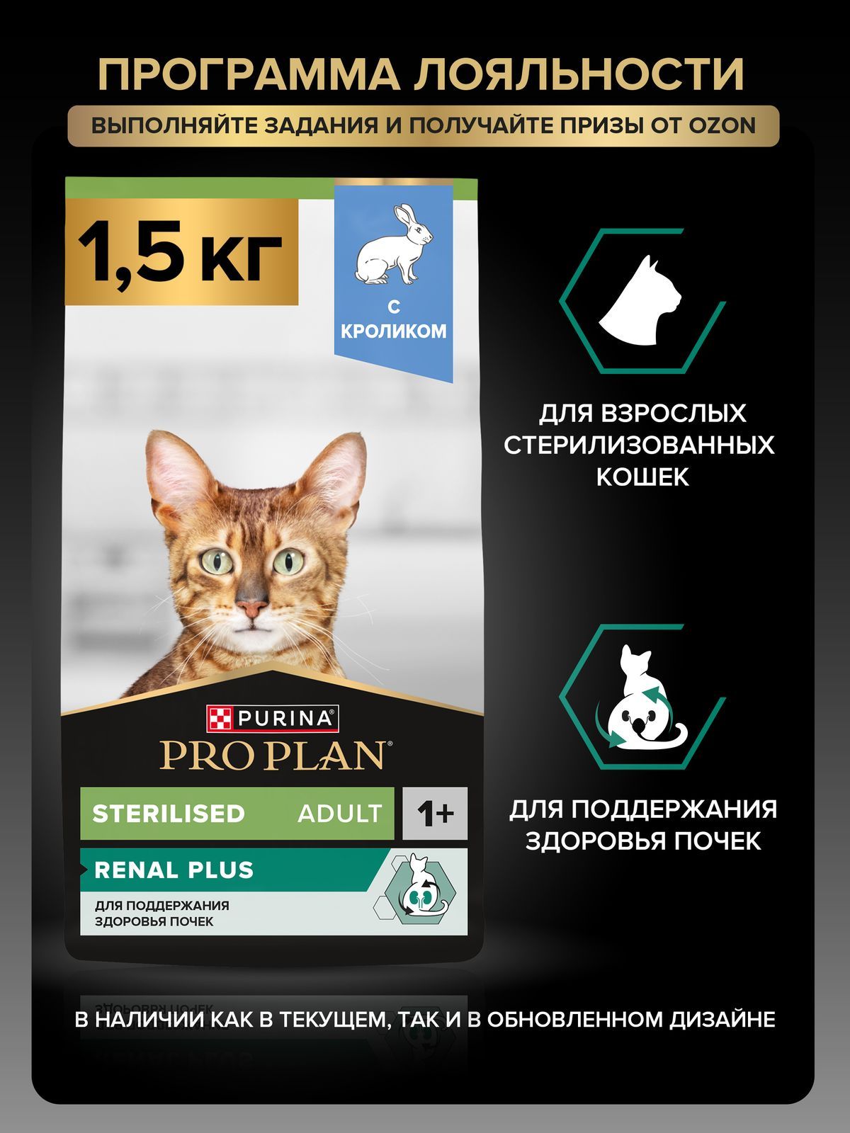 Сухой корм PRO PLAN Sterilised Renal Plus для взрослых стерилизованных кошек и кастрированных котов для поддержания здоровья почек, с кроликом, 1,5 кг