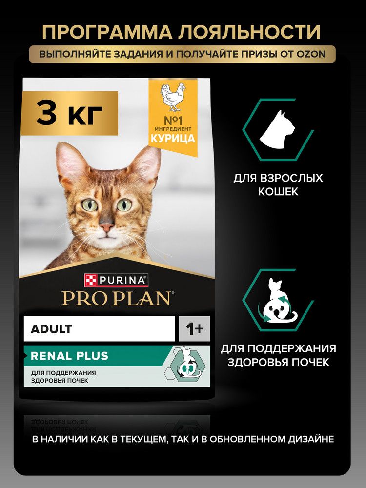 Сухой корм PRO PLAN Renal Plus для взрослых кошек для поддержания здоровья почек, с курицей, 3 кг