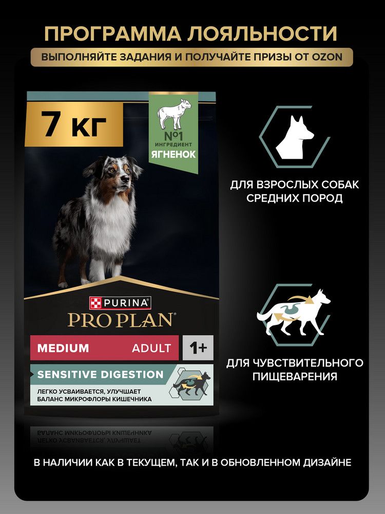 Сухой корм PRO PLAN Sensitive Digestion для взрослых собак средних пород с чувствительным пищеварением, с ягненком, 7 кг