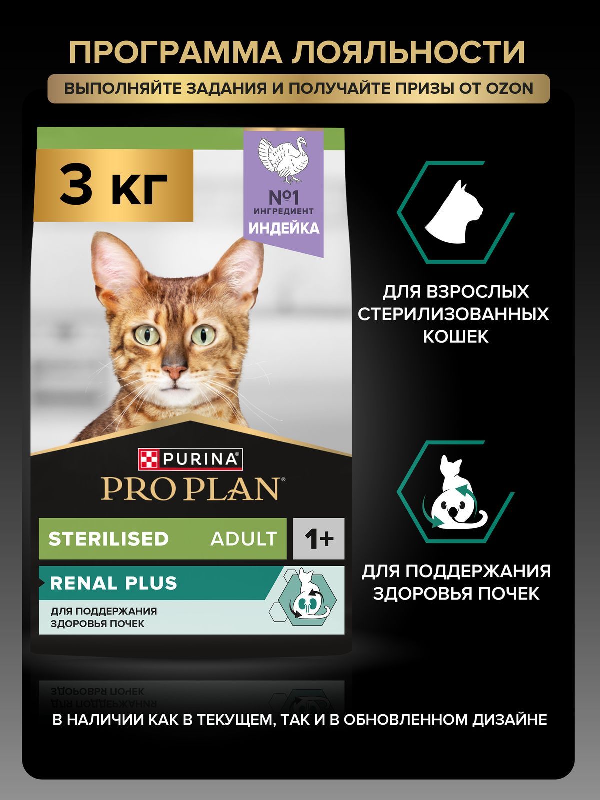 Сухой корм PRO PLAN Sterilised Renal Plus для взрослых стерилизованных кошек для поддержания здоровья почек, с индейкой, 3 кг