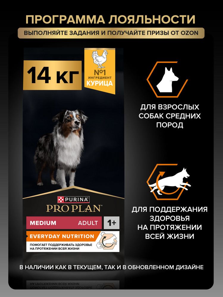 Сухой корм PRO PLAN Everyday Nutrition для взрослых собак средних пород, с курицей, 14 кг