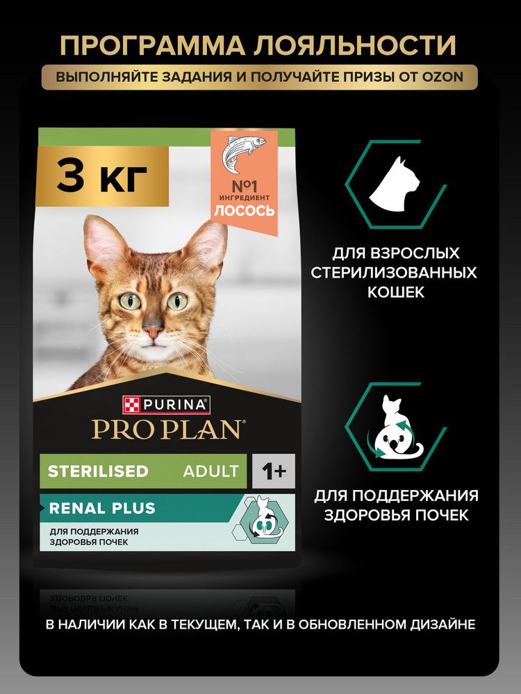Сухой корм PRO PLAN® Sterilised RENAL PLUS для взрослых стерилизованных кошек для поддержания здоровья почек с лососем, 3 кг