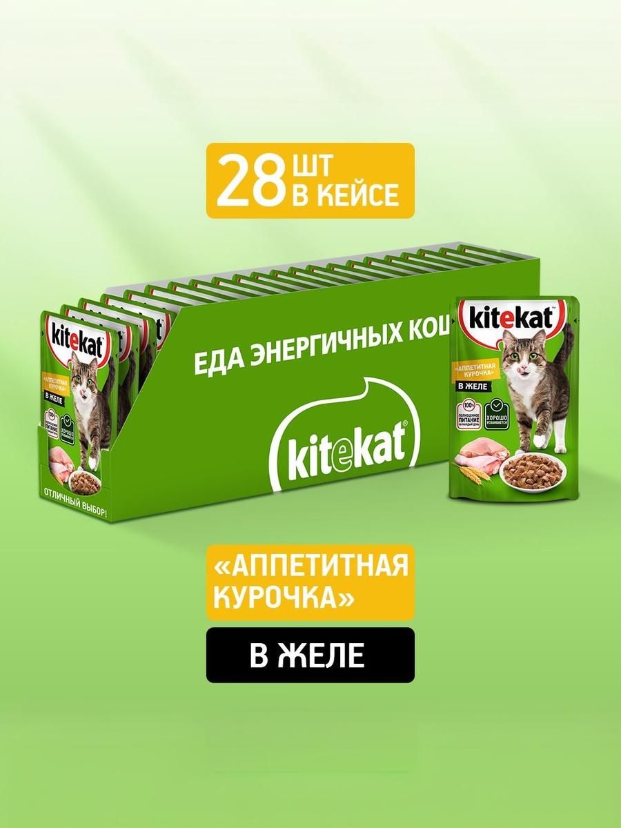 Влажный корм KITEKAT™ для кошек со вкусом курицы в желе «Аппетитная курочка», 28 шт по 85г