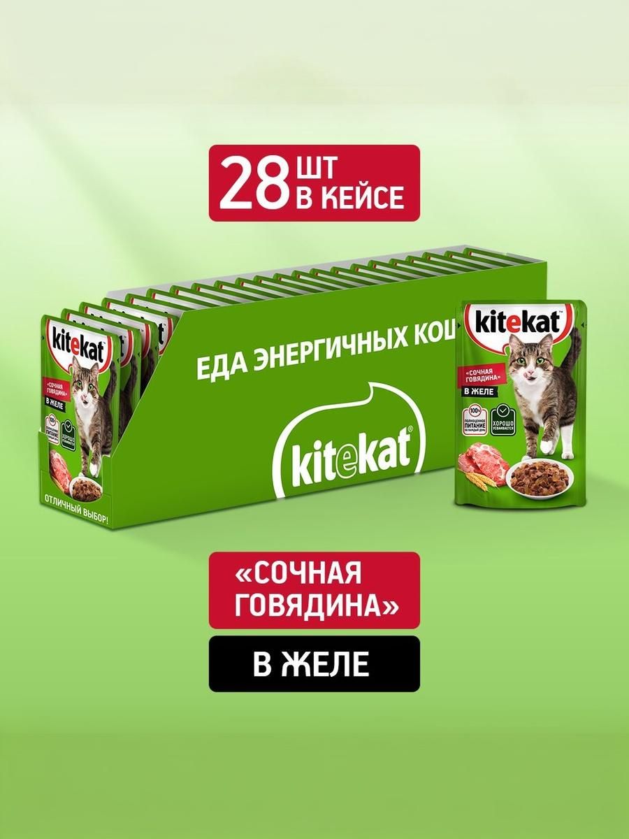 Влажный корм KITEKAT™ для кошек со вкусом говядины в желе «Сочная говядина», 28 шт по 85г