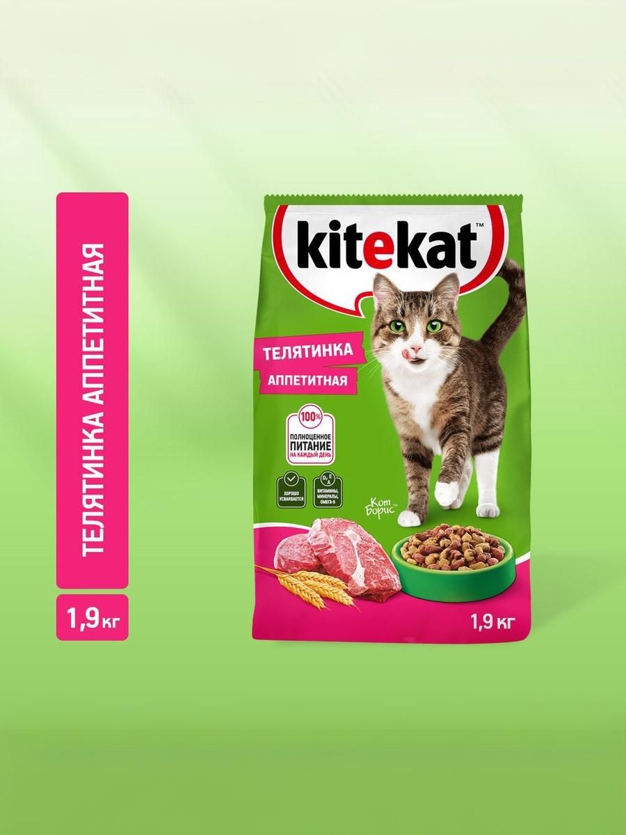 Сухой корм KITEKAT™ для взрослых кошек «Телятинка Аппетитная», 1.9кг