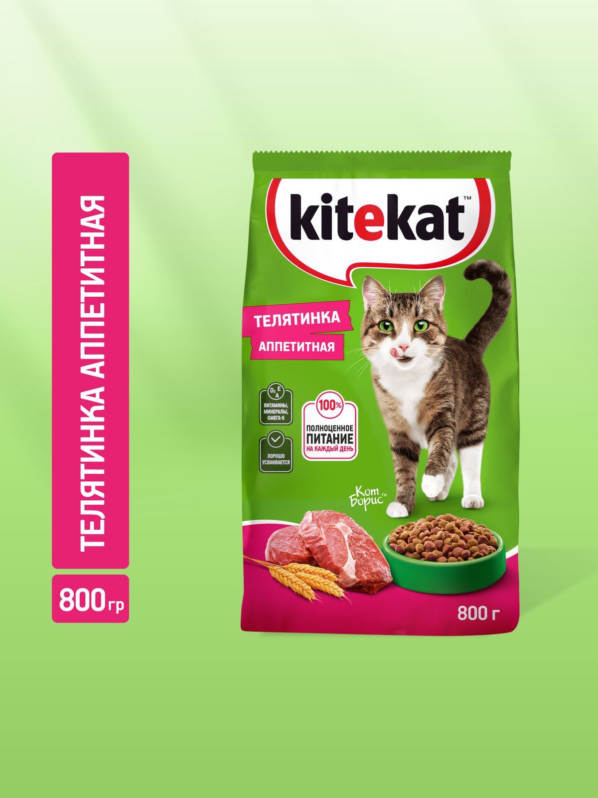Сухой корм KITEKAT для взрослых кошек Телятинка Аппетитная, 800 г