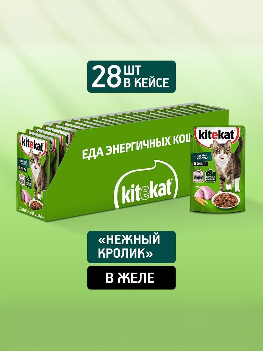 Влажный корм KITEKAT™ для кошек со вкусом кролика в желе «Нежный кролик», 28 шт по 85г