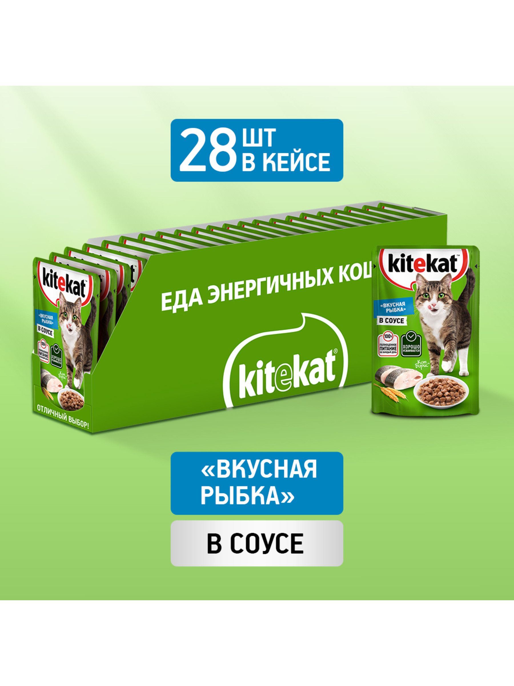 Влажный корм KITEKAT™ для кошек, со вкусом рыбы в соусе. «Вкусная рыбка», 28 шт по 85г
