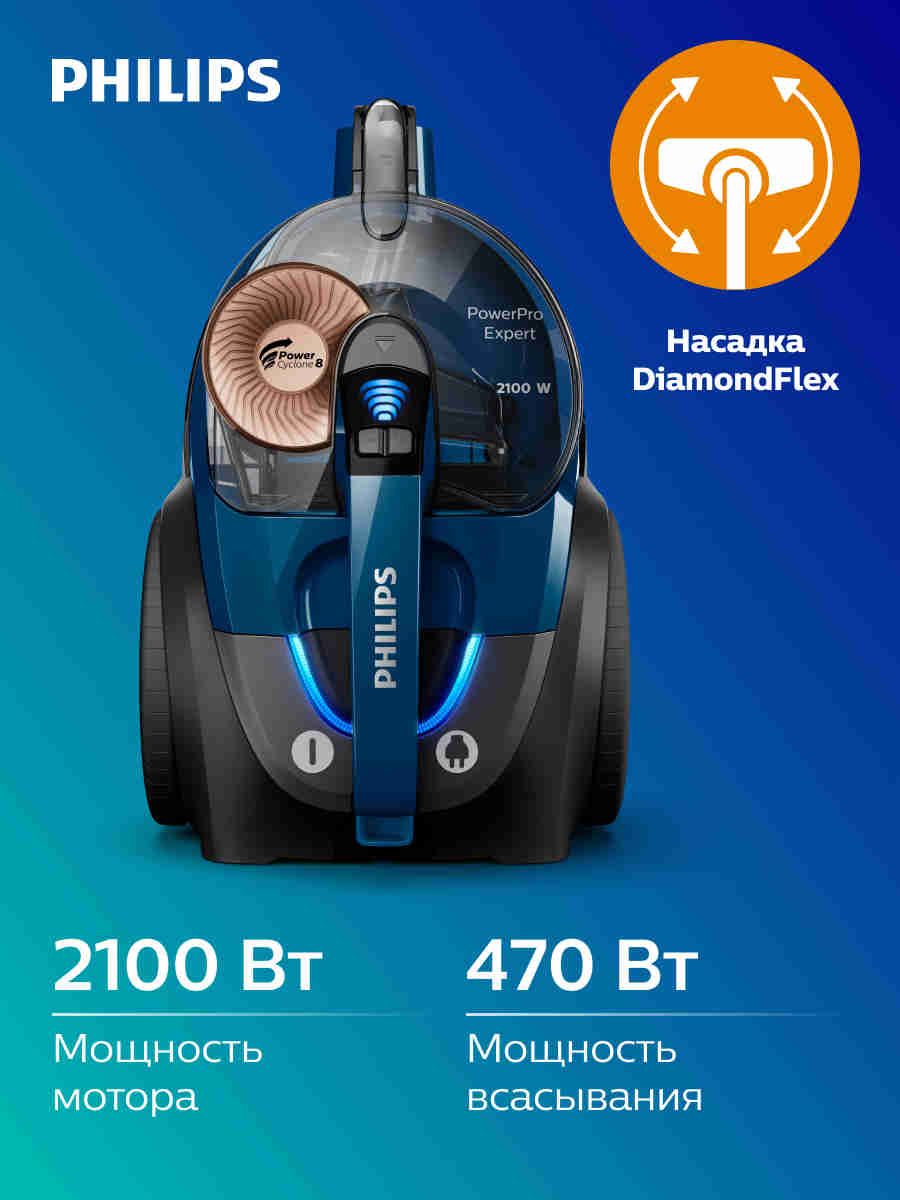 Philips Безмешковый бытовой пылесос FC9573/01, синий, 1900 Вт