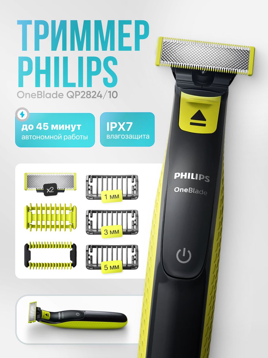 Philips Триммер для бороды и усов Триммер Philips OneBlade QP2824/10, кол-во насадок 5