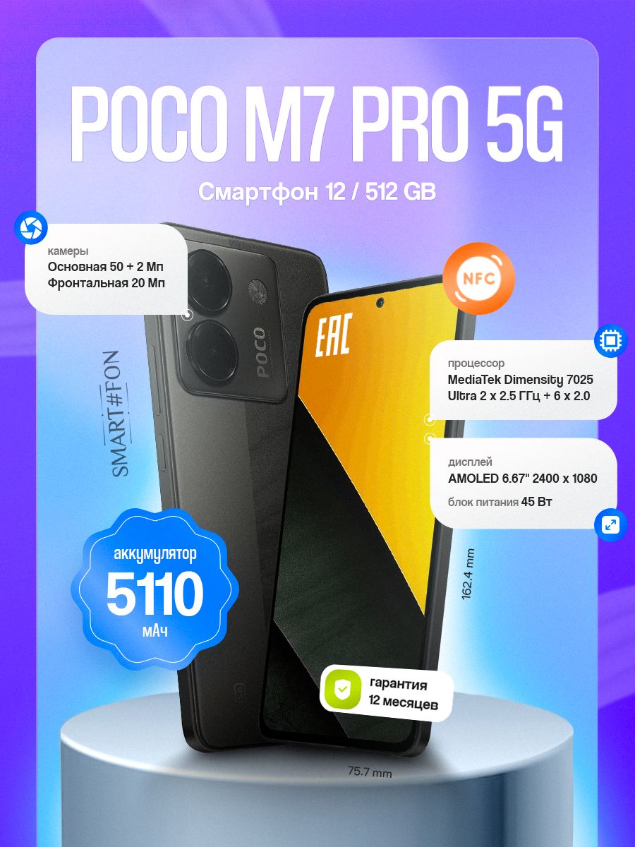 Poco Смартфон POCO M7 Pro Global 12/512 ГБ, черный