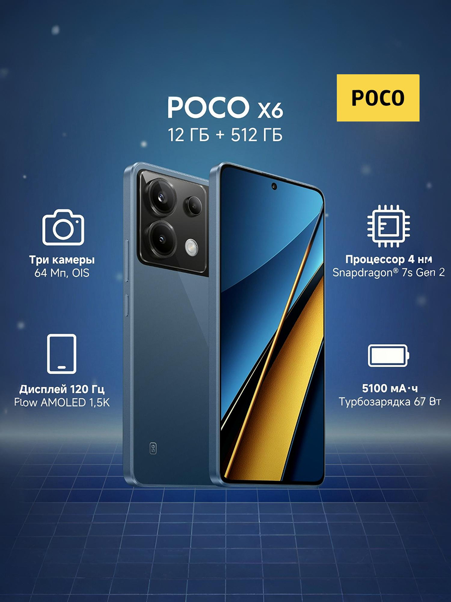 Poco Смартфон POCO X6 5G Ростест (EAC) 12/512 ГБ, синий