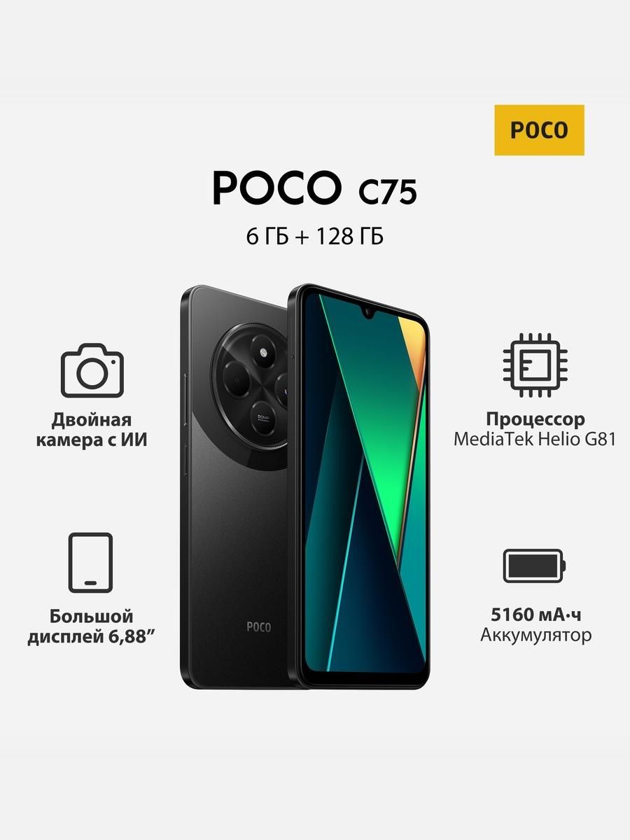 Poco Смартфон C75 Ростест (EAC) 8/256 ГБ, черный