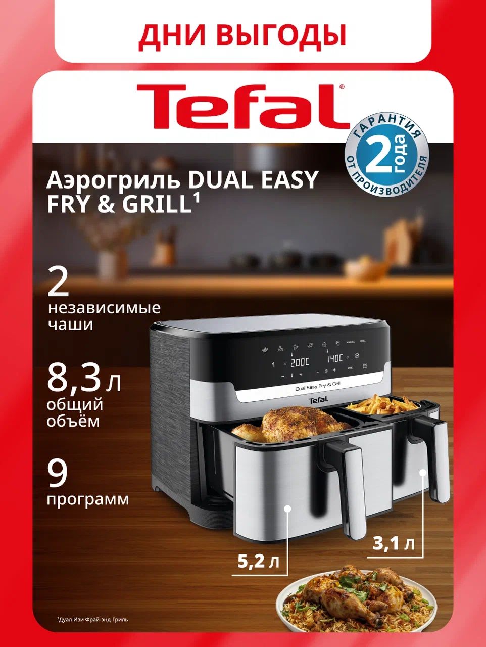 Аэрогриль электрический Tefal 8,3л, 8 автопрограмм, 2 чаши, EasyFry&Grill, EY905D10