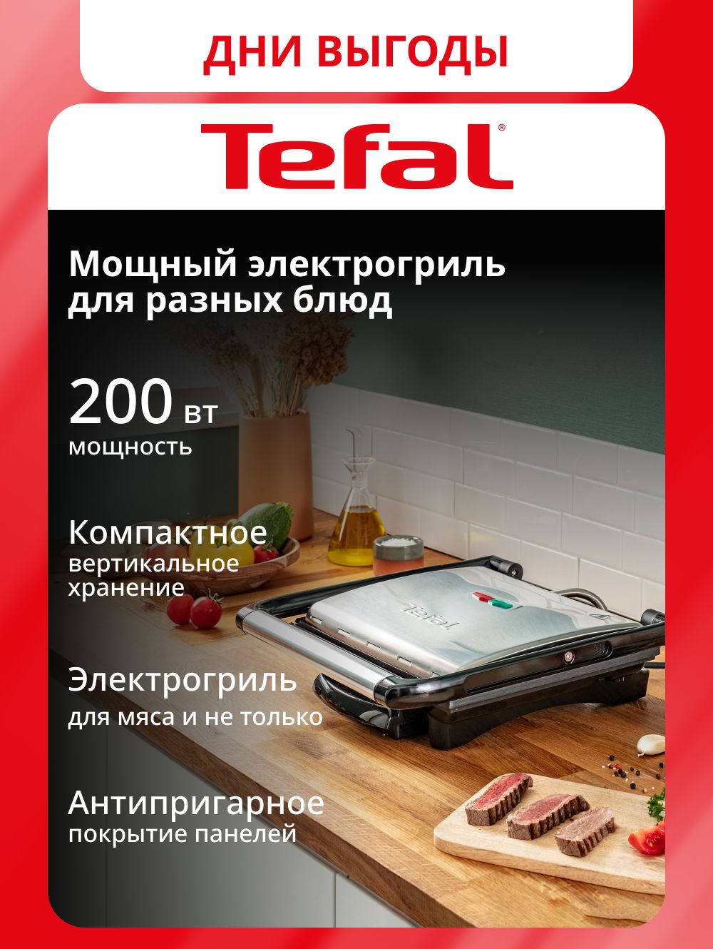 Электрогриль Tefal Inicio GC241D38 со съемными антипригарными пластинами, стальной/черный