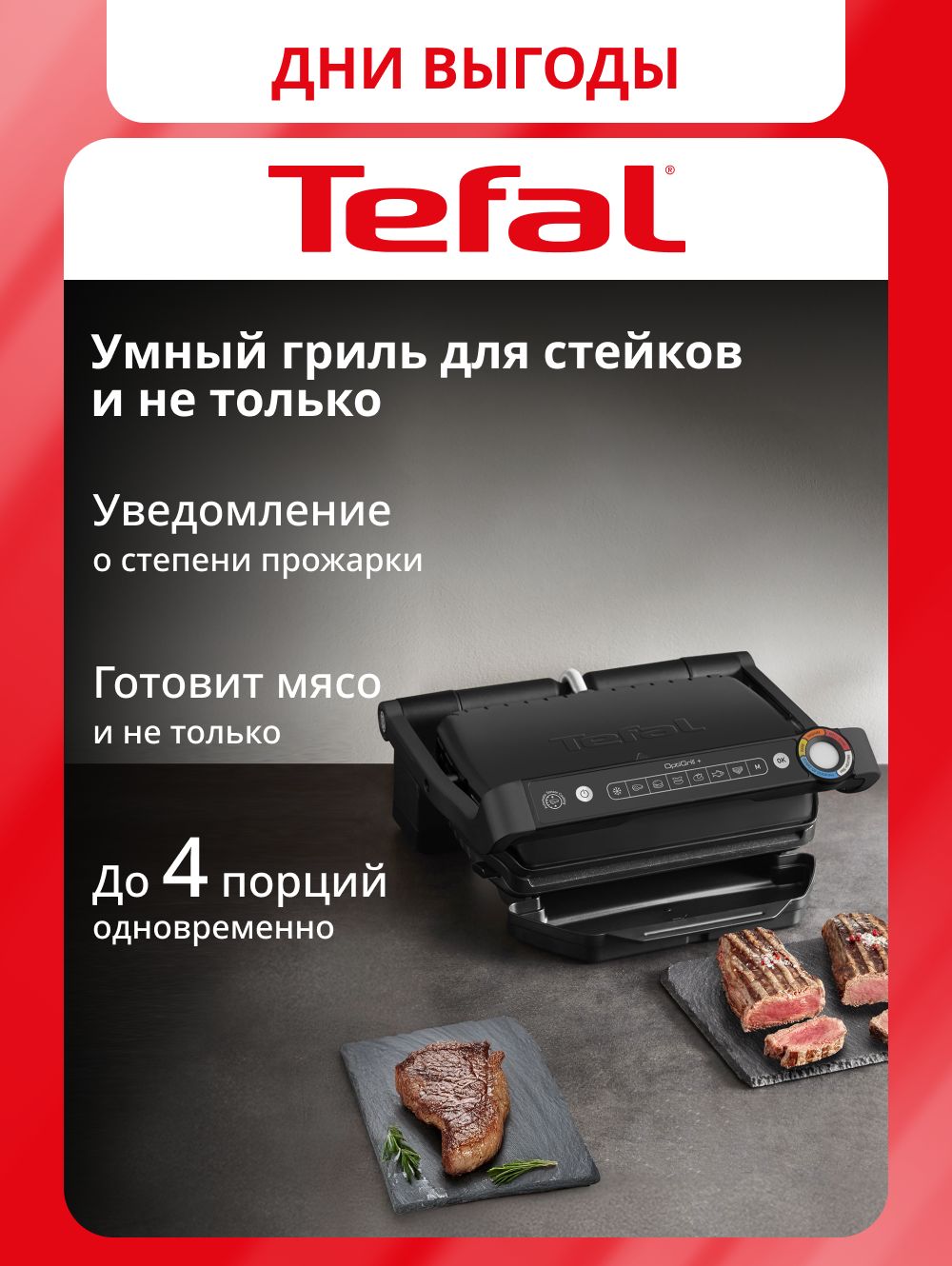 Гриль электрический Tefal OptiGrill+, 6 автопрограмм, со съемными панелями, насадки для вафель в комплекте, GC716D12