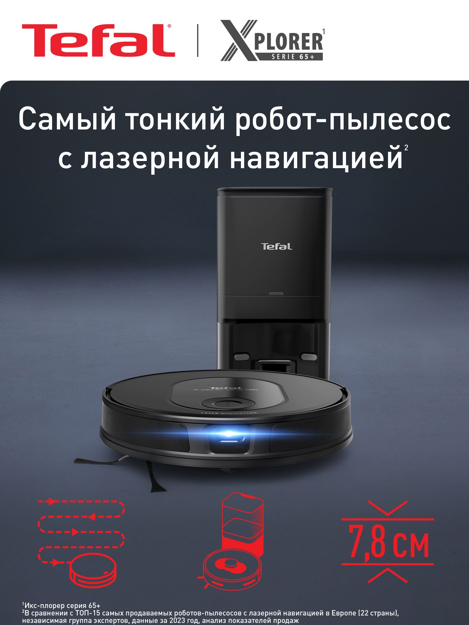 Робот-пылесос Tefal X-Plorer Serie 65+ RG8L85WH, со станцией самоочистки, с сухой и влажной уборкой, автономной работой до 2.5 ч, подключением по Wi-Fi