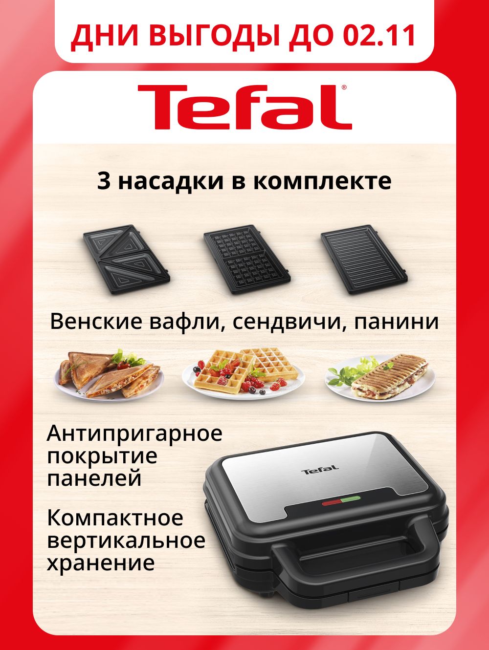 Вафельница электрическая мини 3в1 Tefal UltraCompact SW383D10 со сменными панелями, антипригарным покрытием, 700 Вт