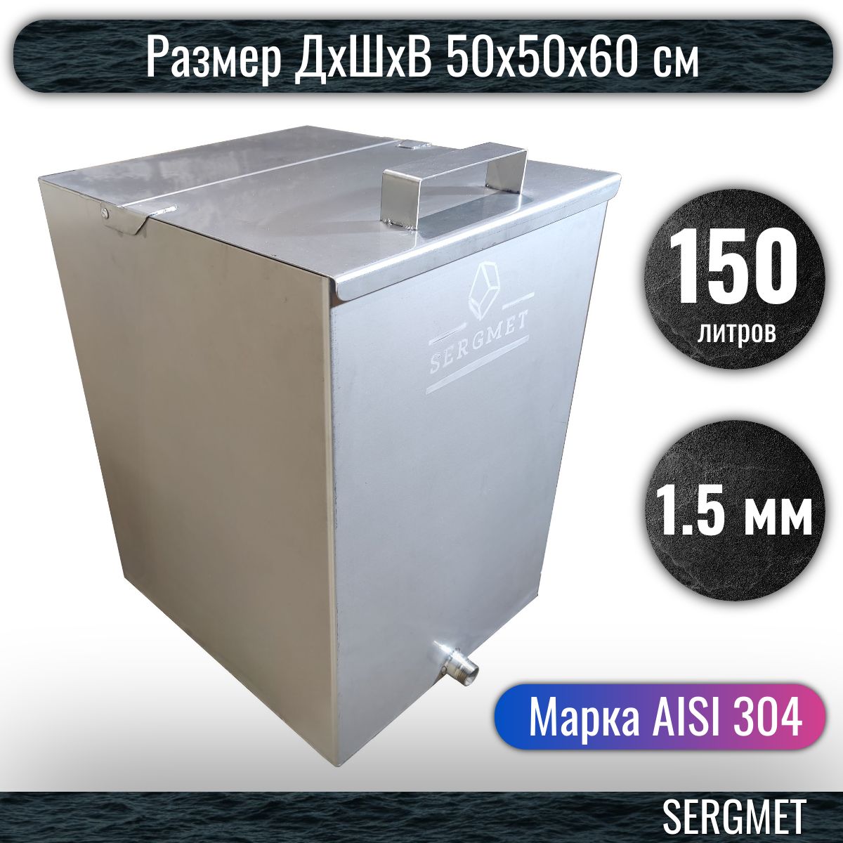 Бак для бани из нержавейки 150 л. 1.5 мм/AISI 304 (50х50х60 см)
