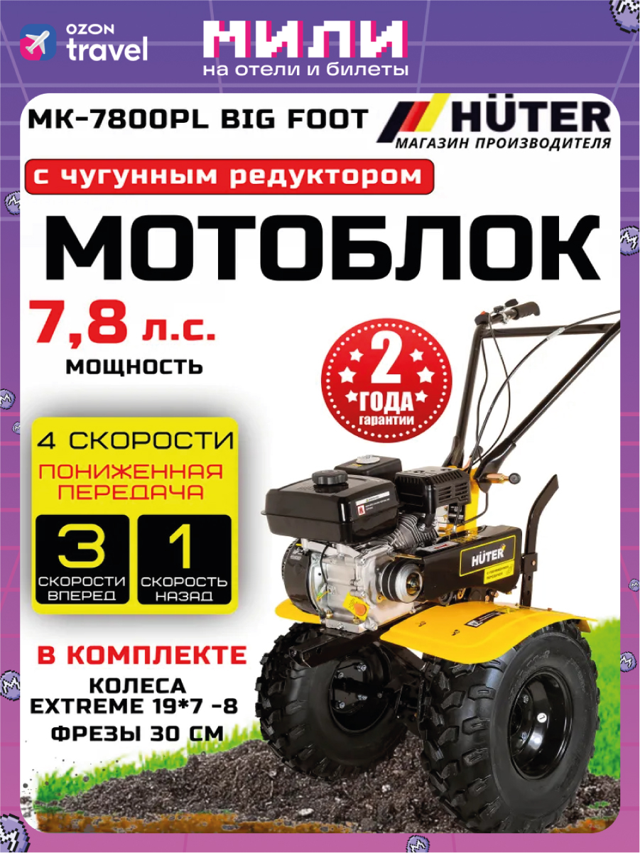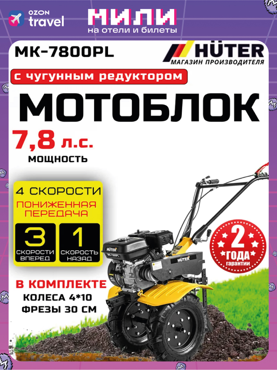 Электрический культиватор -1600 Вт Huter, ширина обработки 40 см, фрезы 21 см/ EMC-40/21
