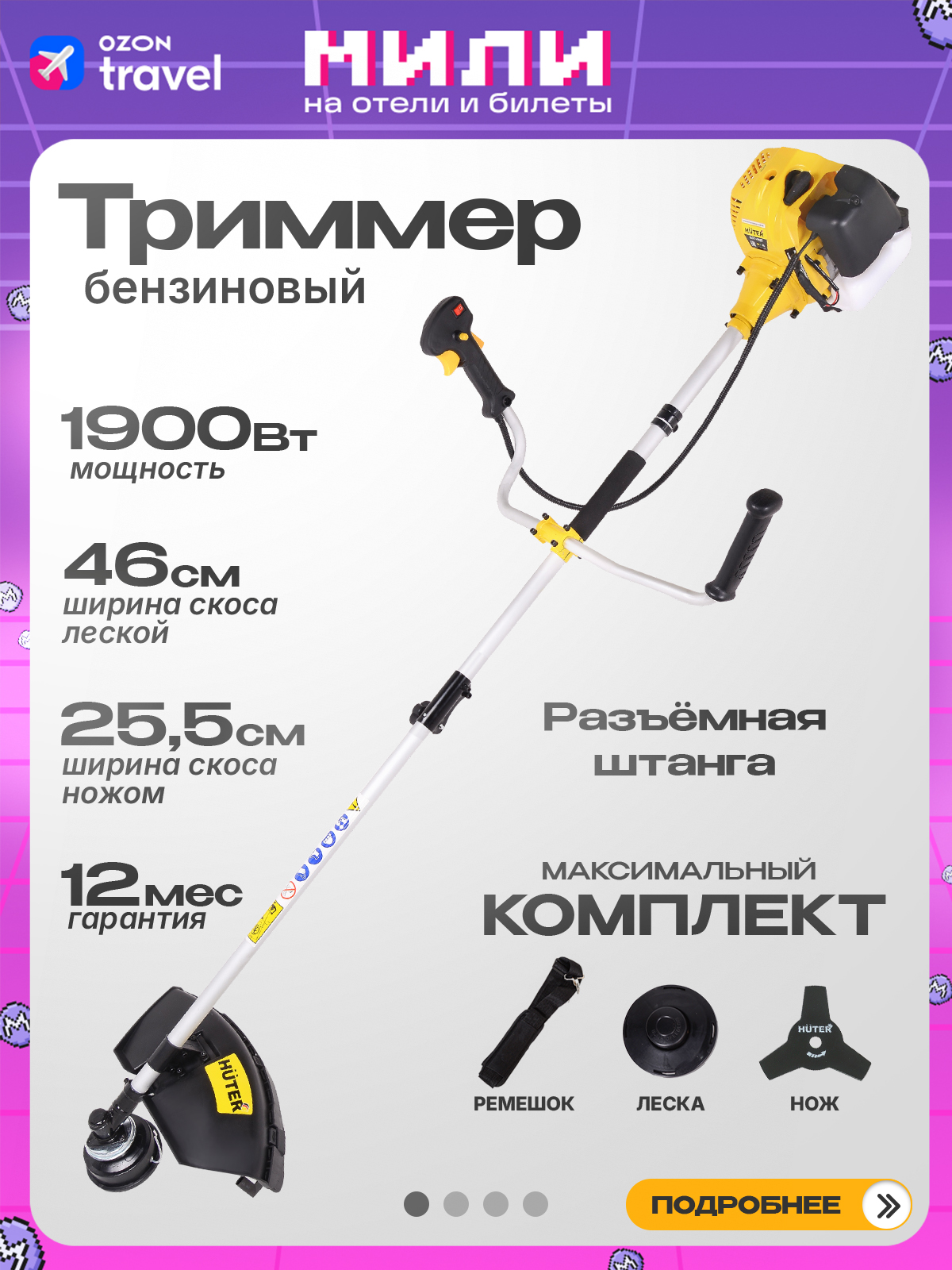 Триммер бензиновый 52см3 Huter - разъемная штанга; в комплекте плечевой ремень, катушка и Нож 3Т; GGT-5200S