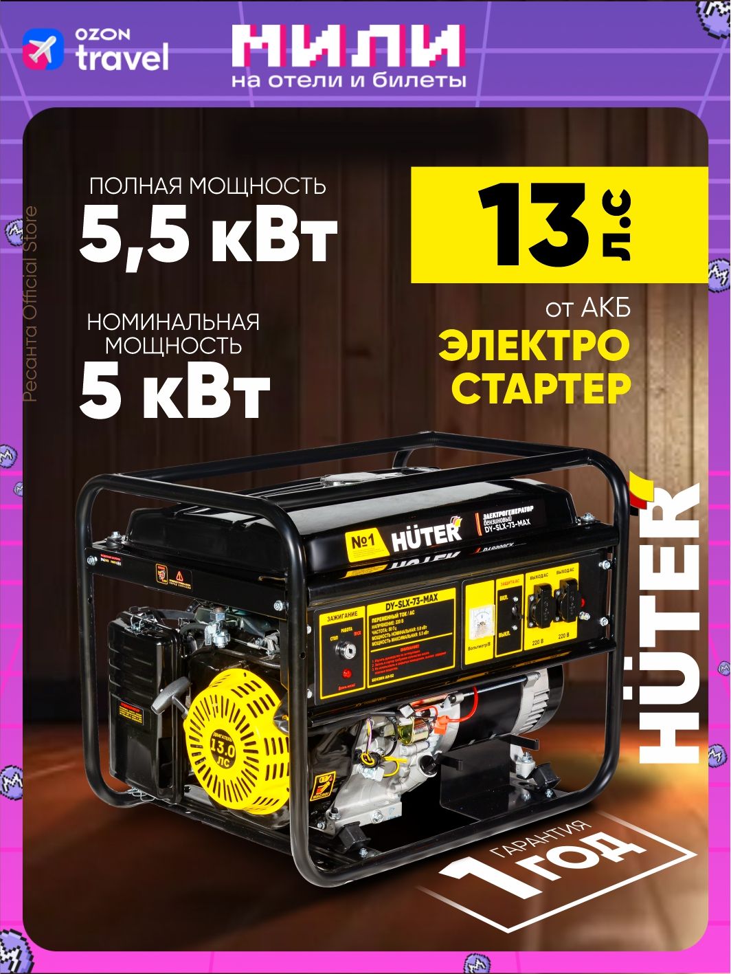 Генератор бензиновый Huter 5кВт; max 5,5 кВт, электростартер/DY-SLX-73-MAX