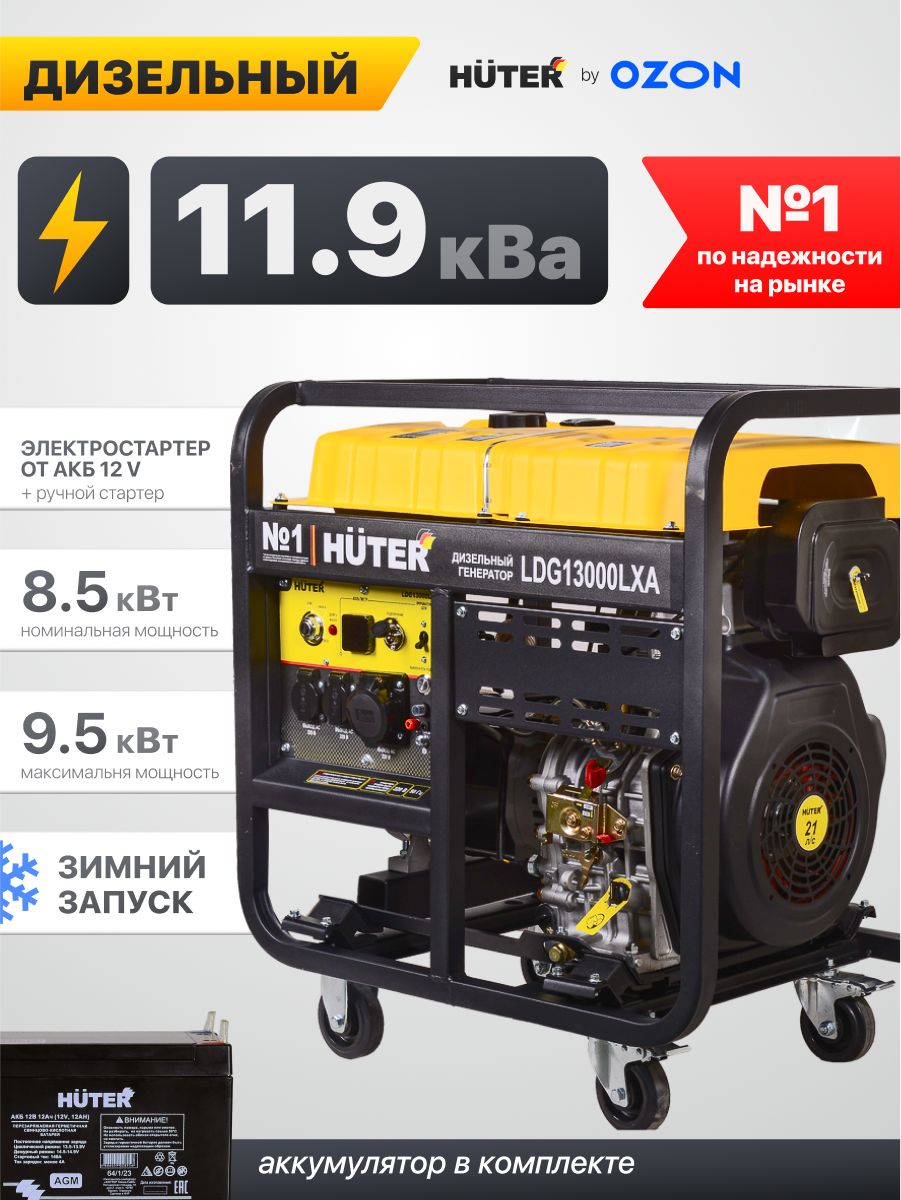 Дизельный генератор Huter LDG 13000LXА, генератор дизельный 9,5 квт