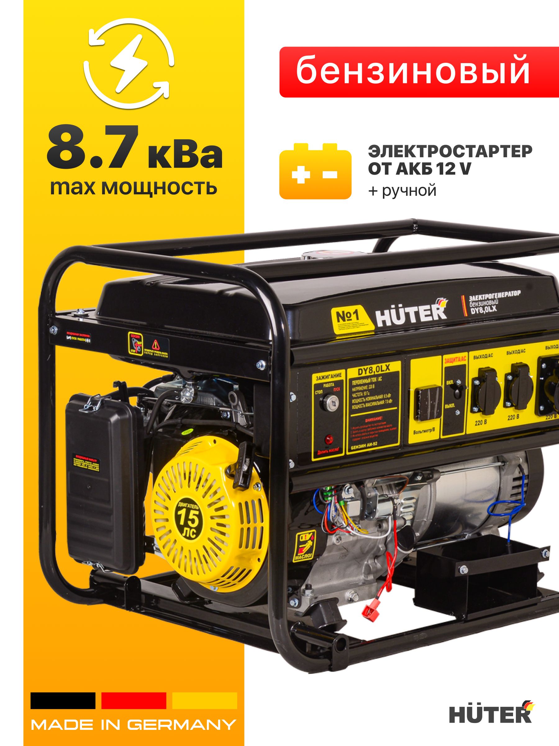 Генератор бензиновый 7кВт HUTER DY8.0LX, электростартер