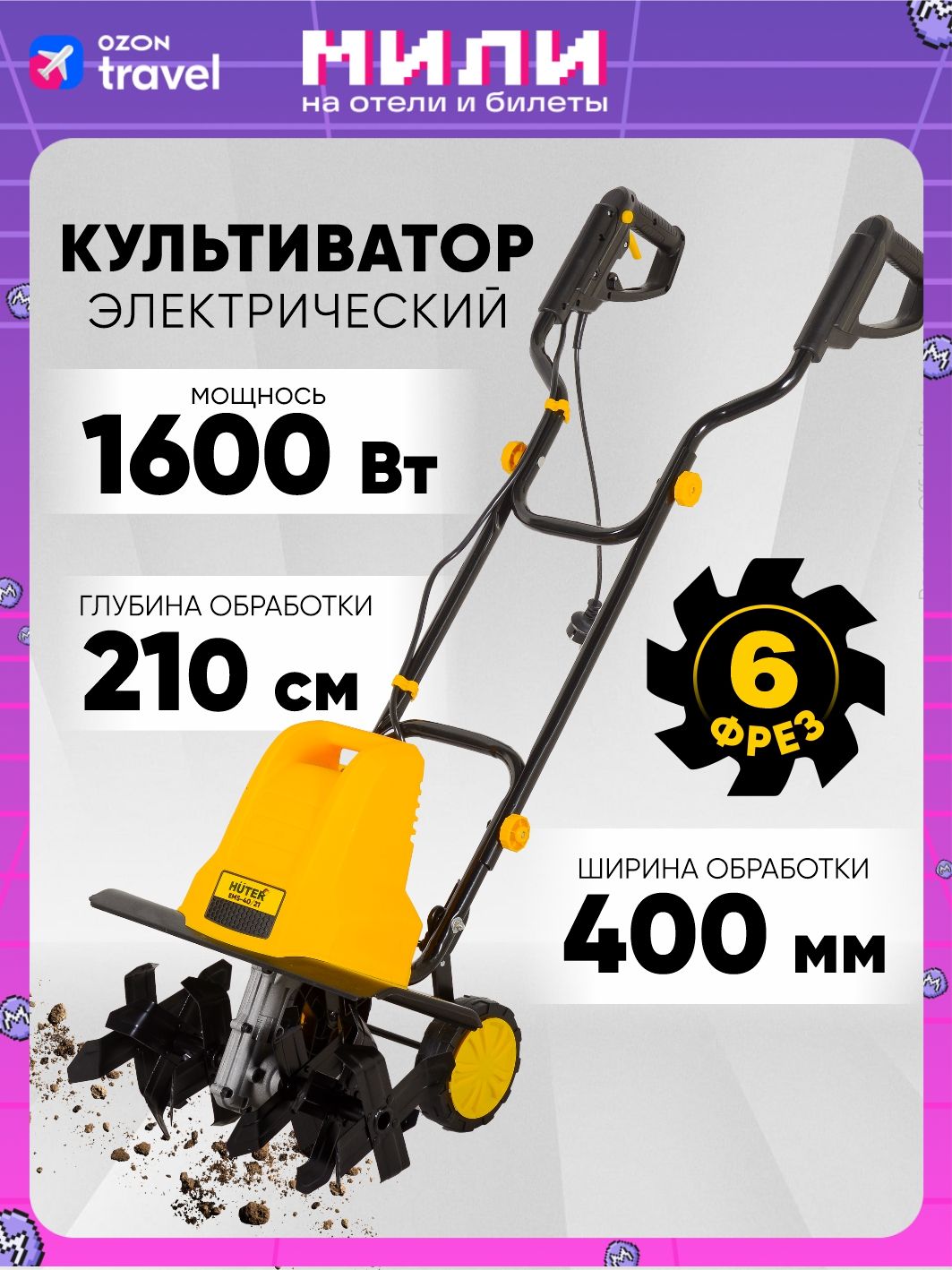 Культиватор электрический, HUTER ЕМС-1600 - 1600вт; ширина обработки 40см; фрезы 21см