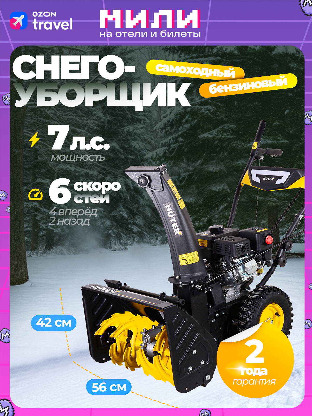 Снегоуборщик Huter SGC 6900S - 7 л.с, скорости-4 вперед/2 назад, шир. 56см, выс. 42см, бак 3л