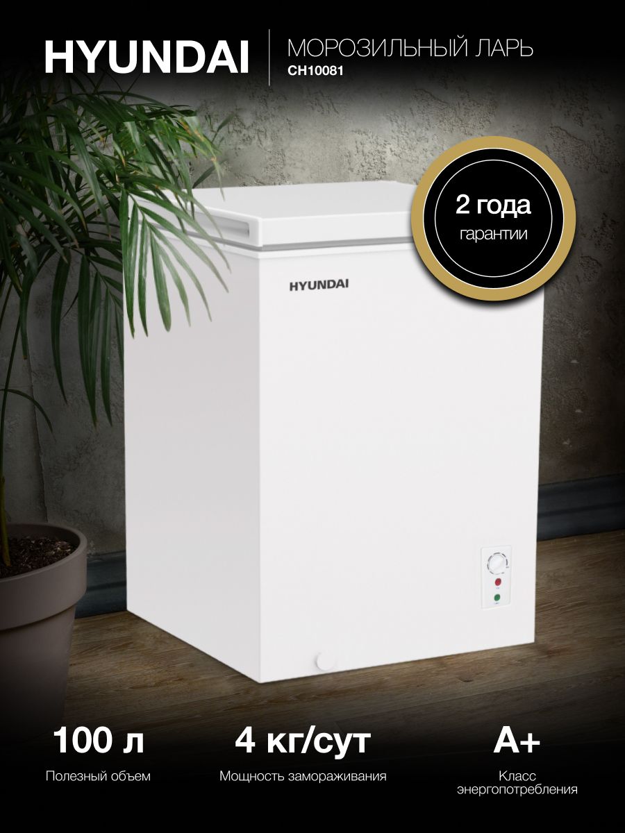 Морозильный ларь HYUNDAI Объем 112 л, Класс A+, Тихий 42 дБ, Высота 83,5 см, Белый
