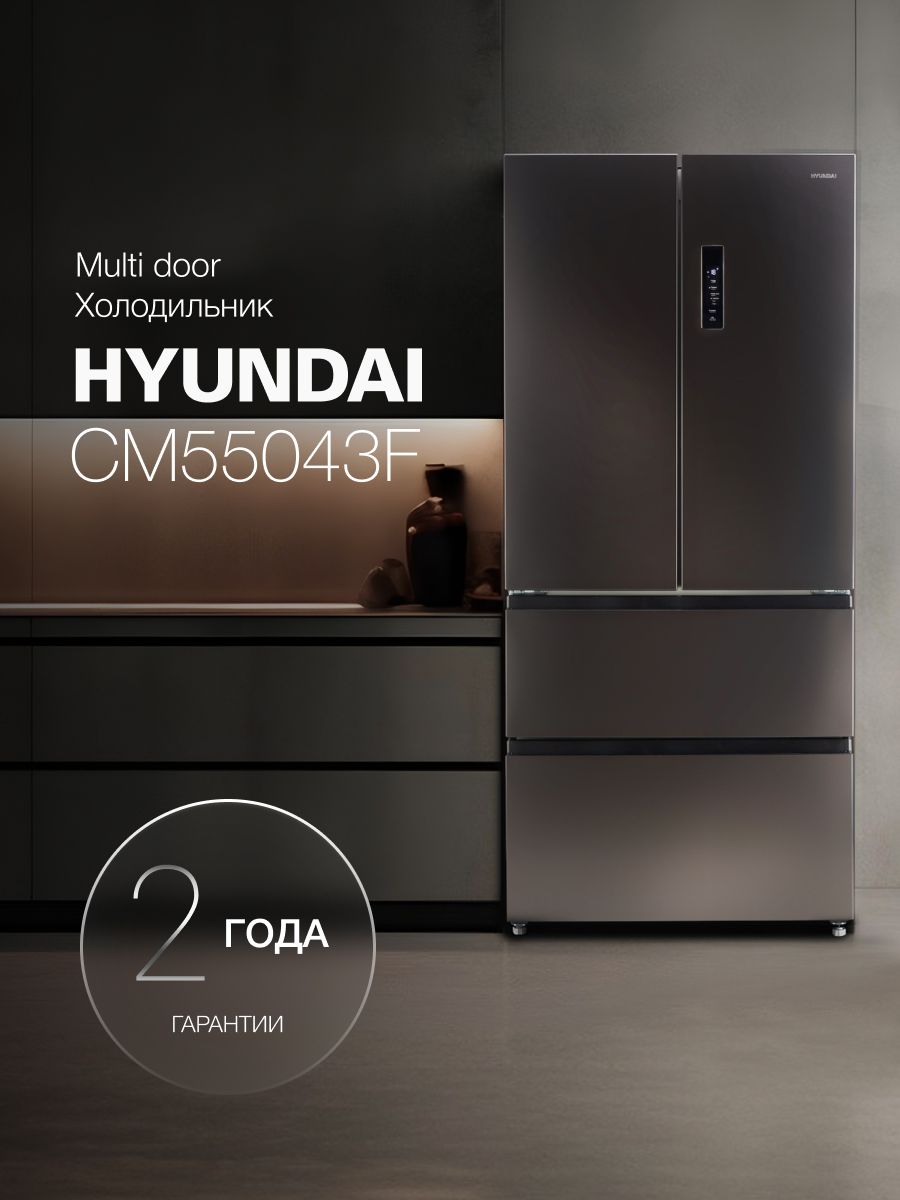Холодильник трехкамерный HYUNDAI CM55043F, NoFrost Инвертор, Объем 605 л, управление Сенсорное с Дисплеем, Тихий - 37 дБ LED освещение Темная сталь
