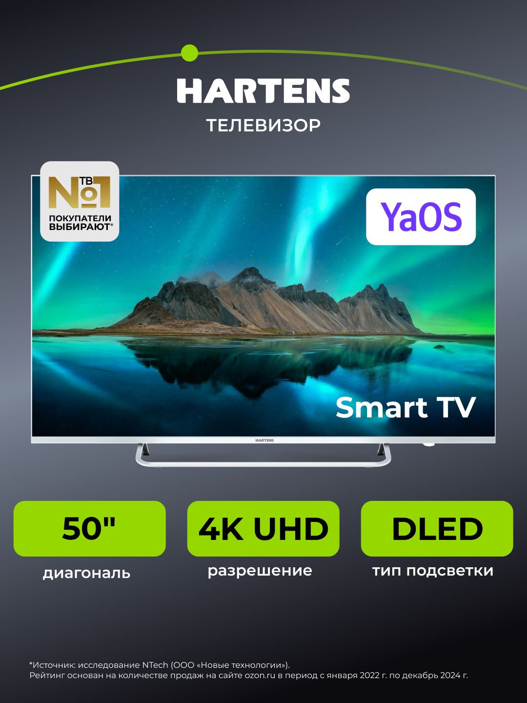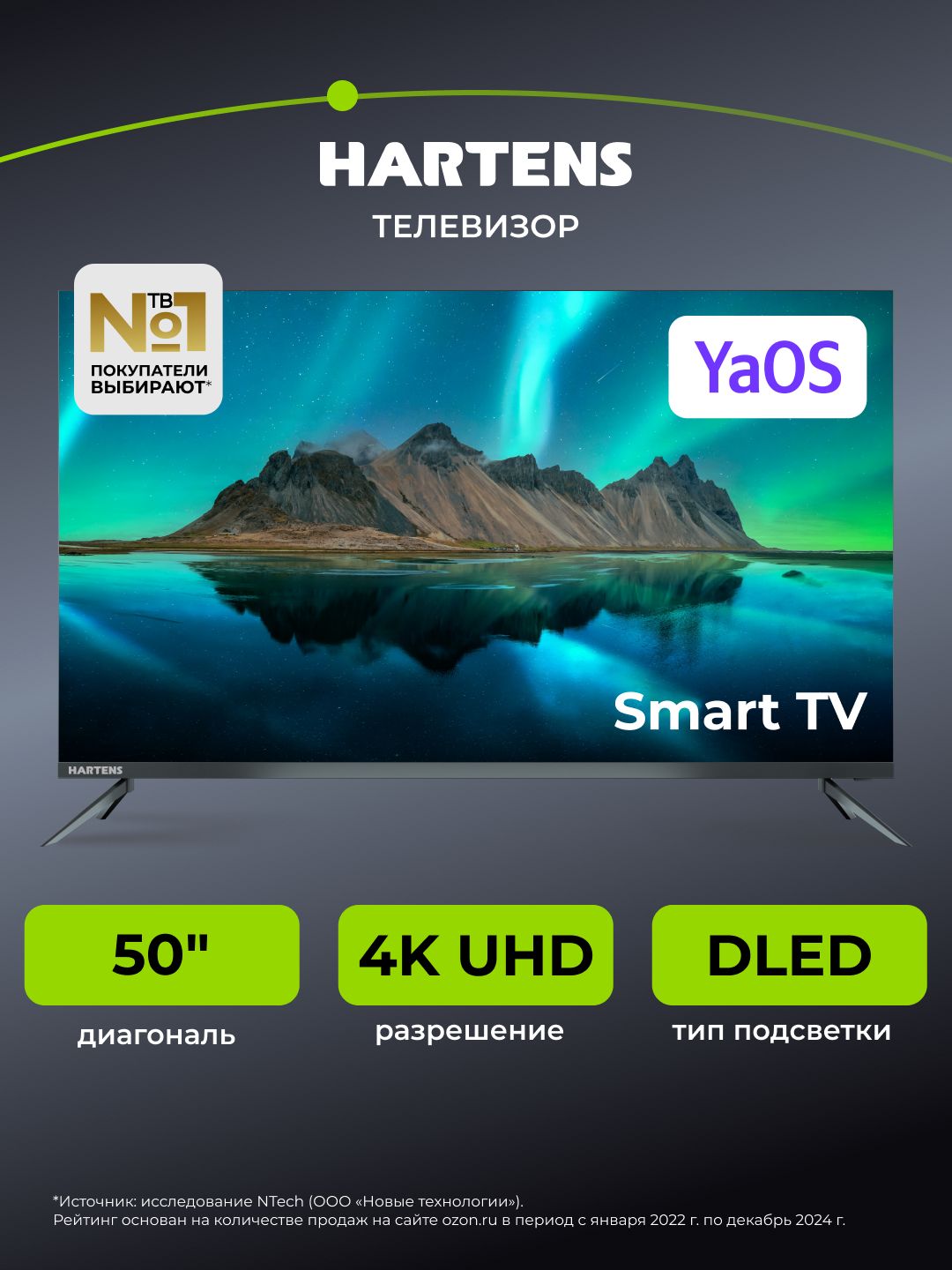 Hartens Телевизор HTY-50UHDO11G-HC22 50" 4K UHD, серый
