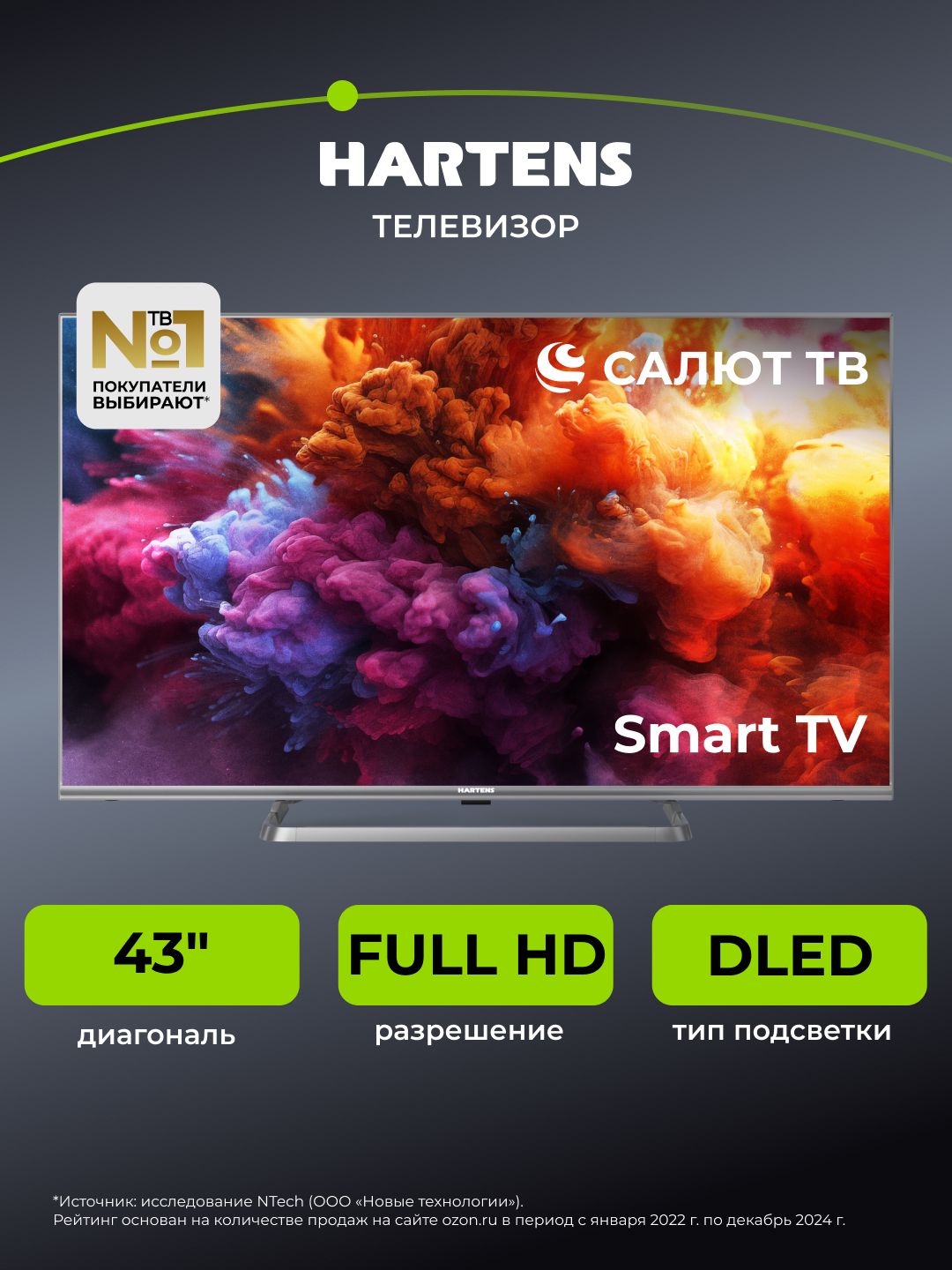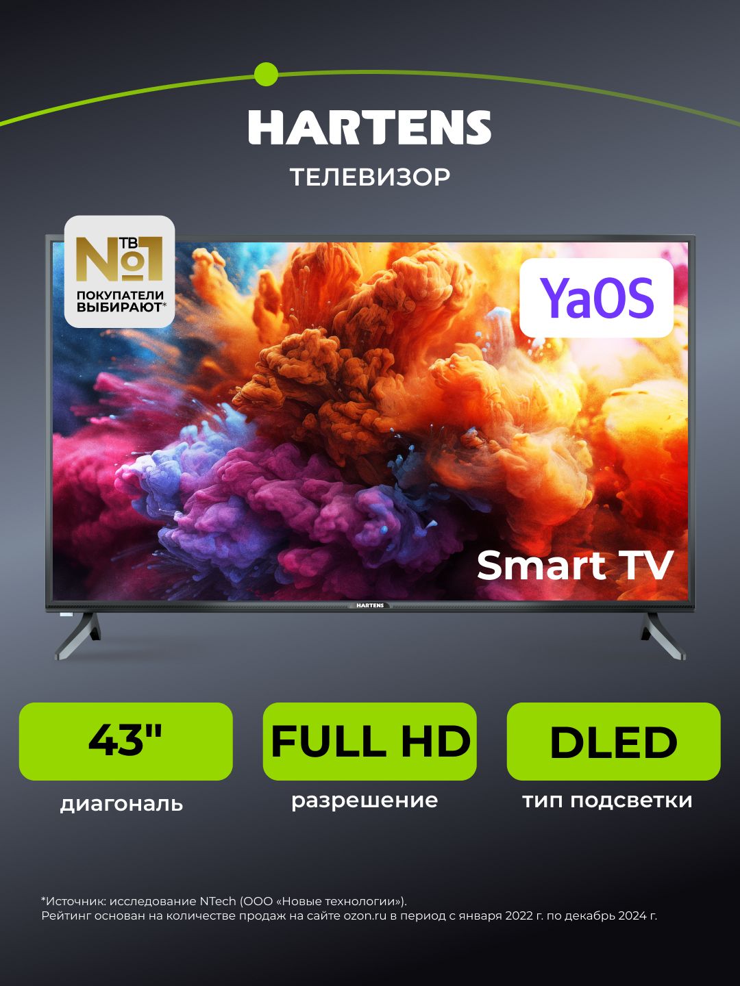 Hartens Телевизор HTA-43QLED11B-HH24 43" 4K UHD, черный