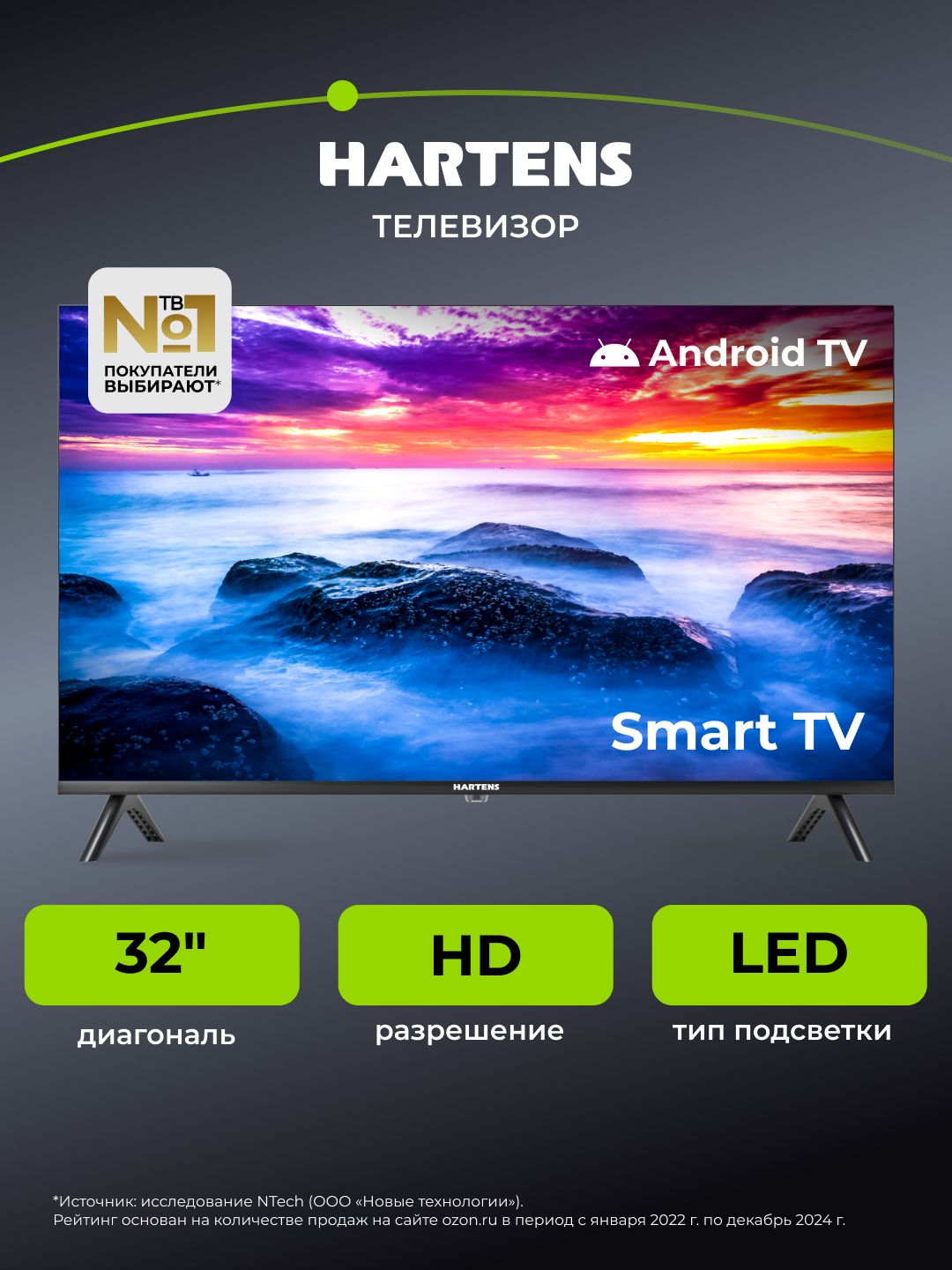 Hartens Телевизор HTA-32HDR11B-HH24 32" HD, черный