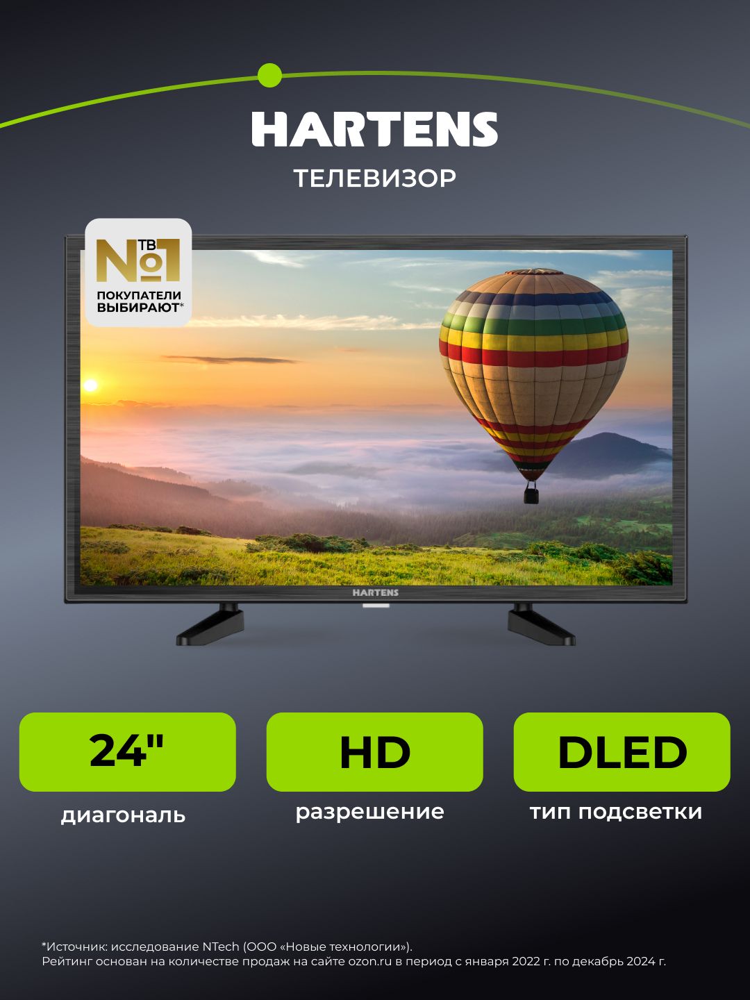 Hartens Телевизор HT-24H06B-VZ/M 24" HD, черный