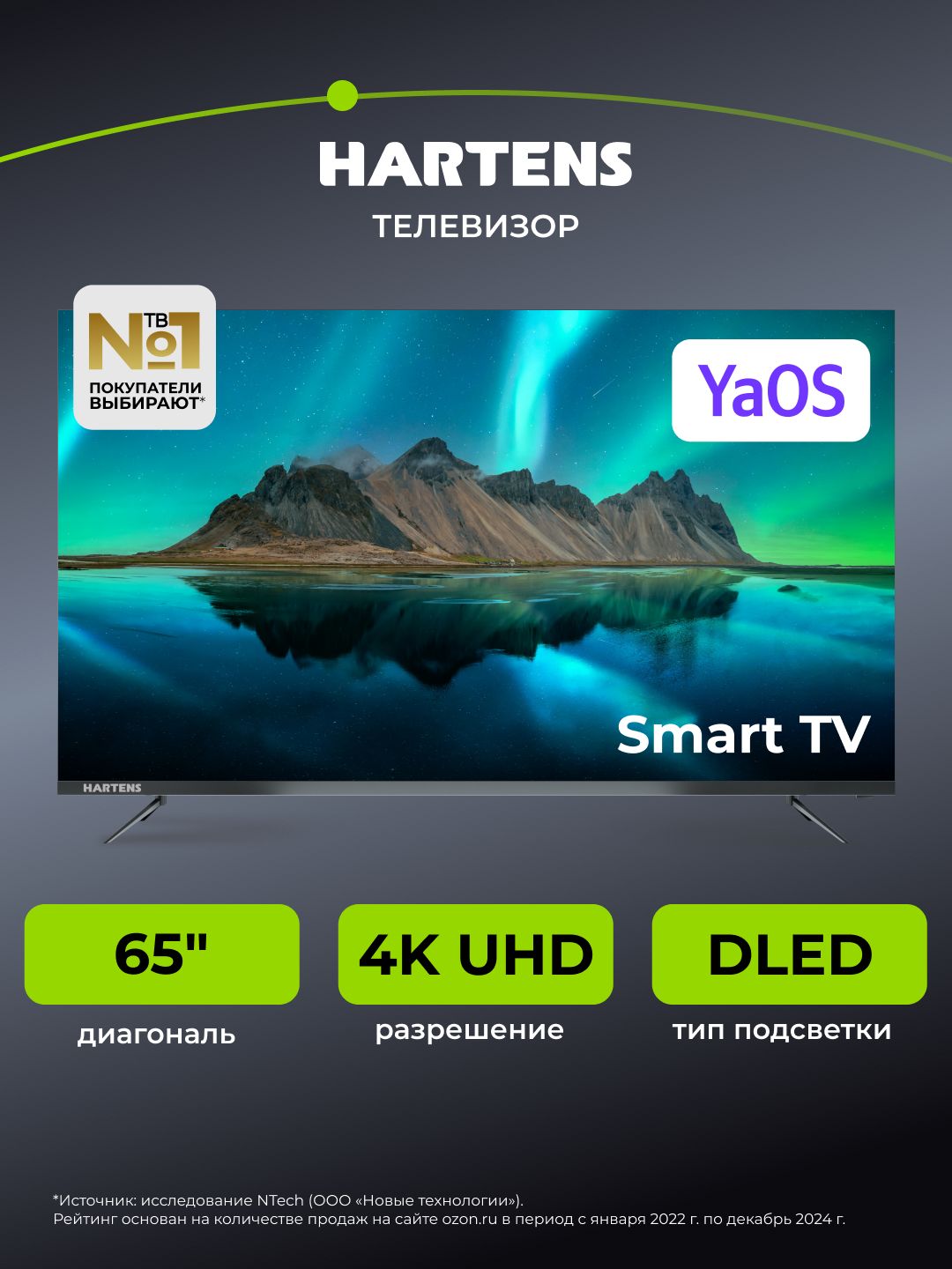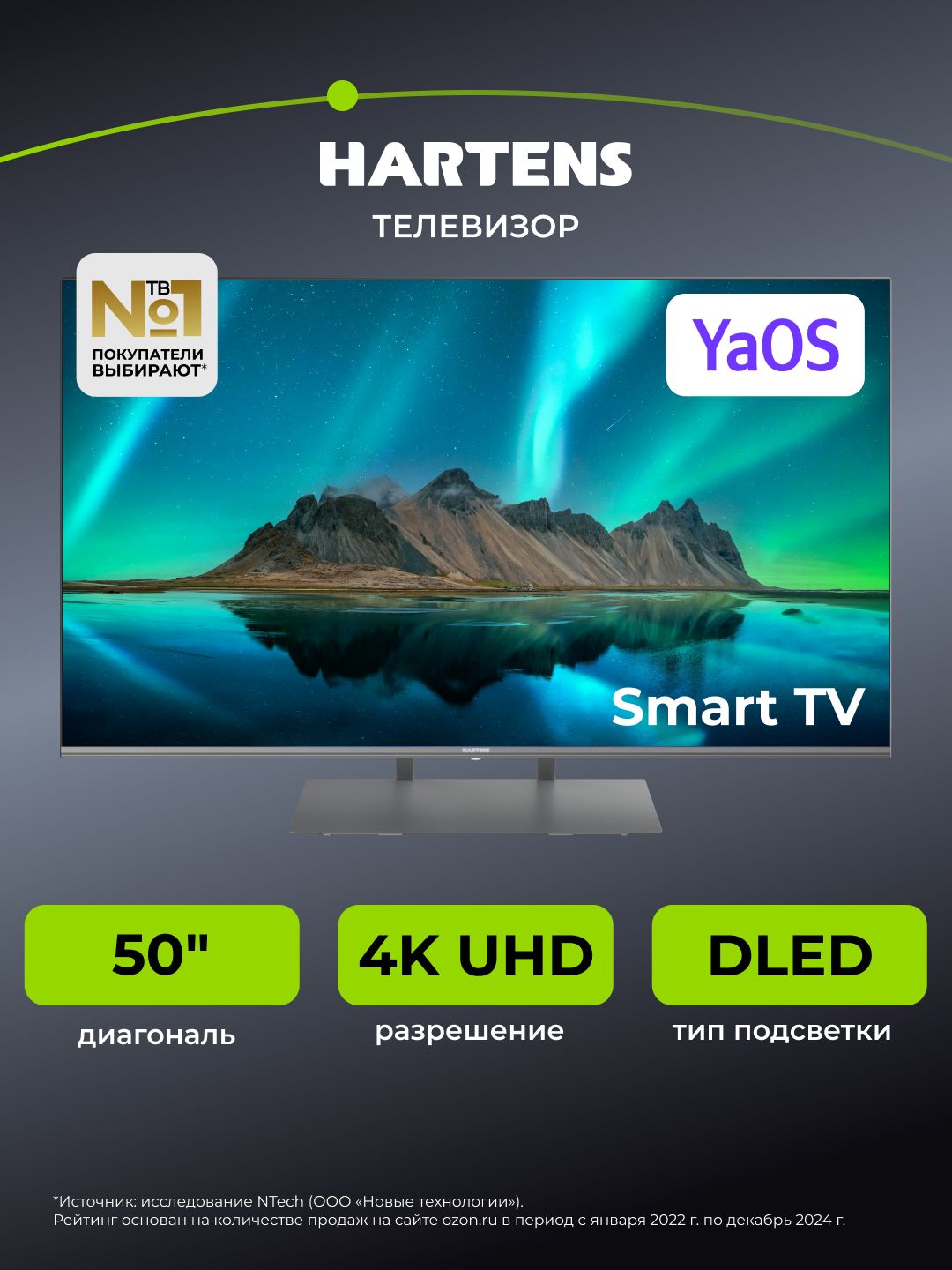 Hartens Телевизор HTA-55QLED11B-HH24 55" 4K UHD, черный