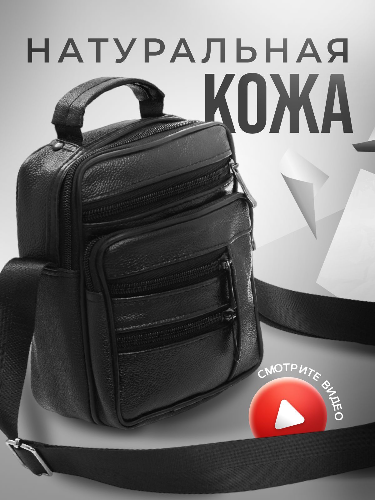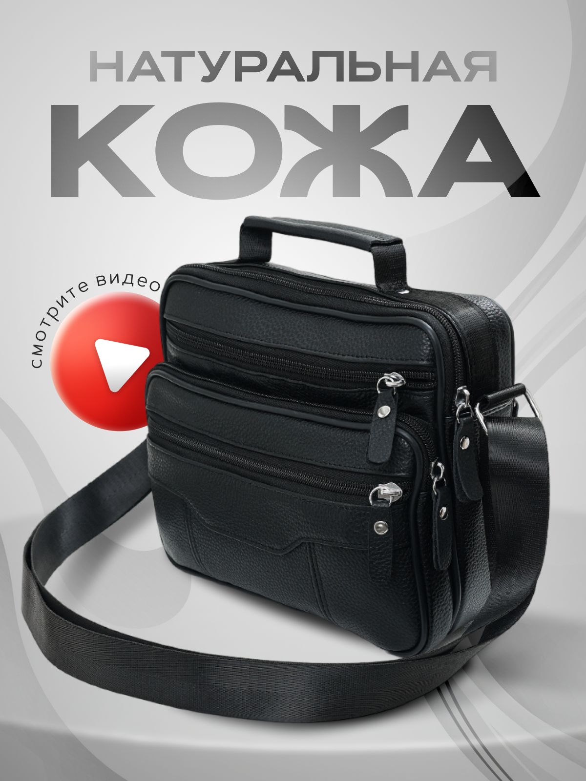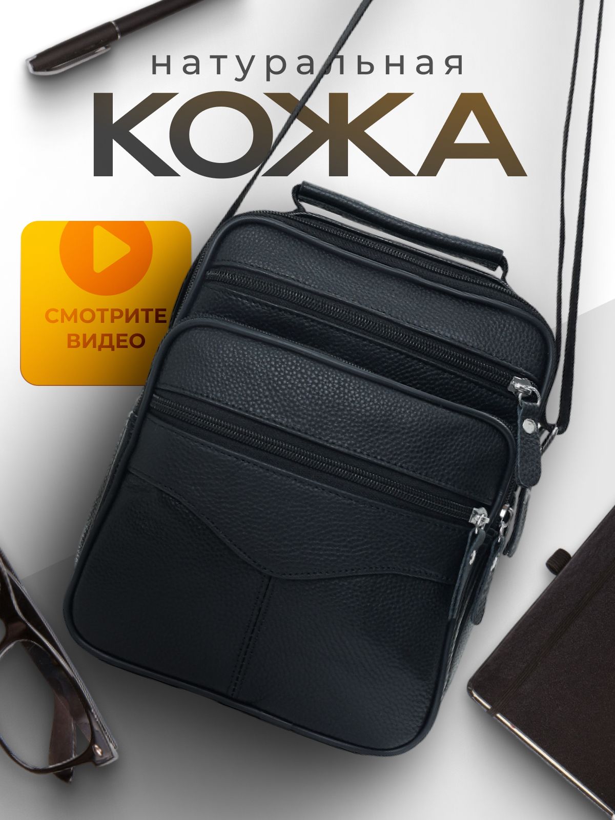 Сумка мужская через плечо, натуральная кожа, Habastore Сумочка для документов, Барсетка кожаная, черная