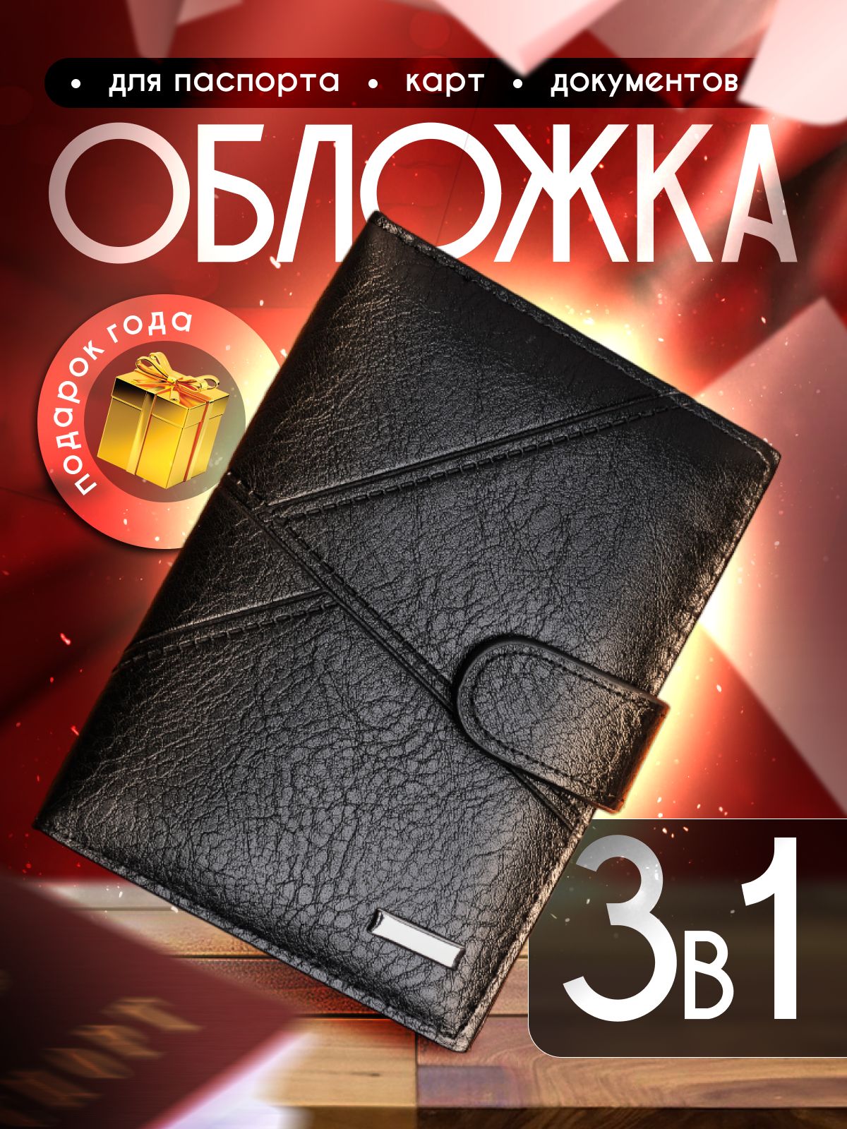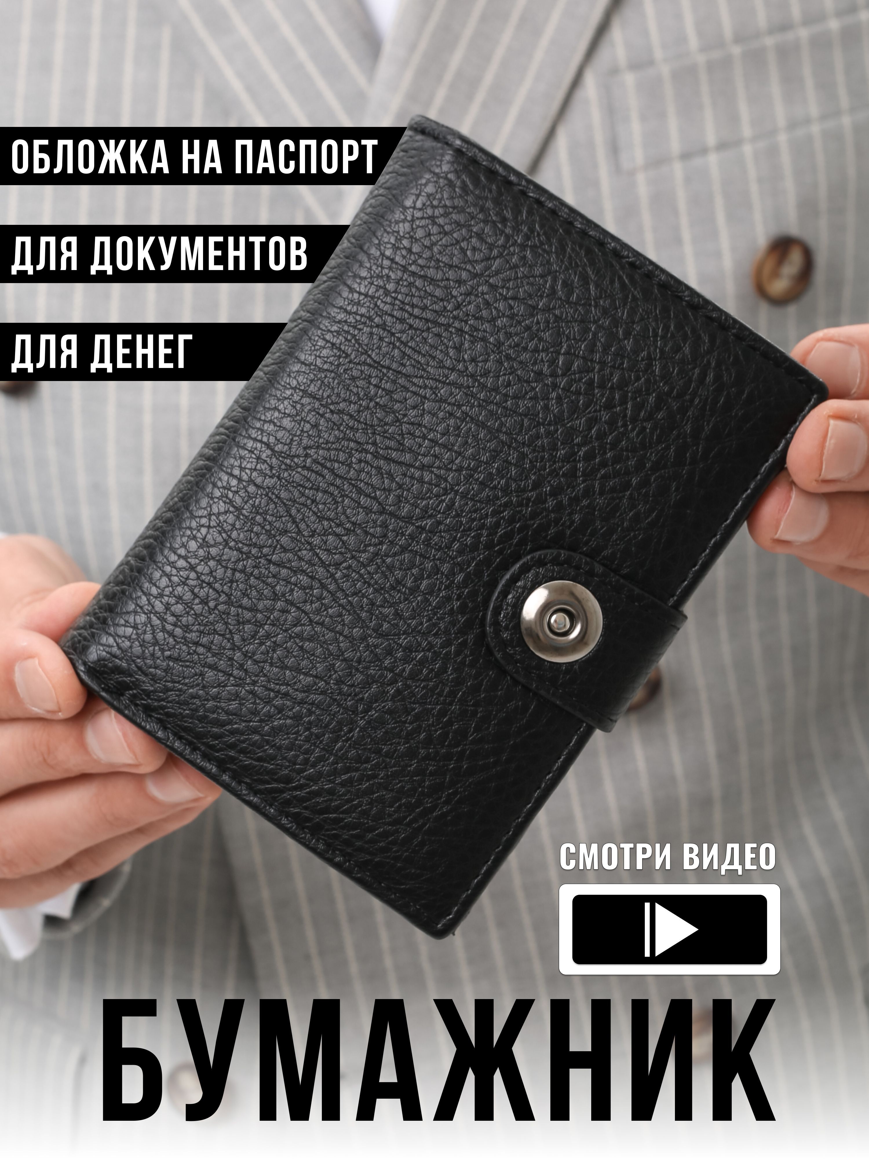 Обложка на паспорт мужская кожаная Habastore чехол для автодокументов, черный