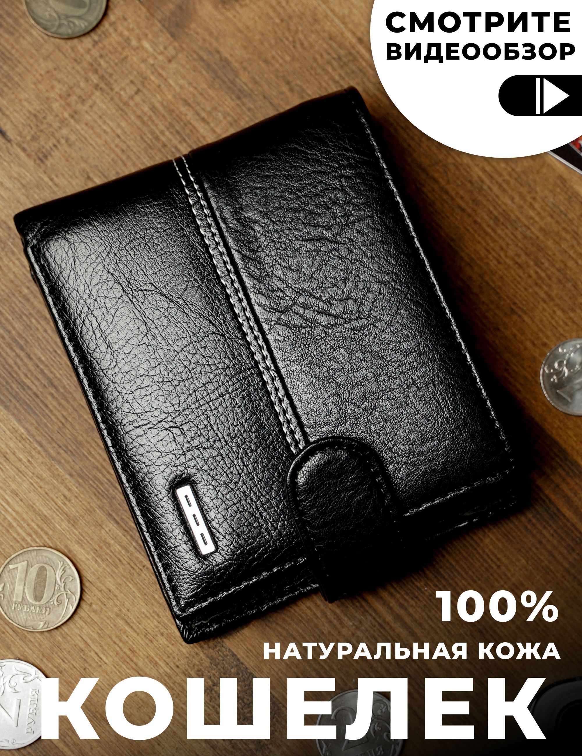 Кошелек мужской из натуральной кожи Habastore, бумажник кожаный, черный
