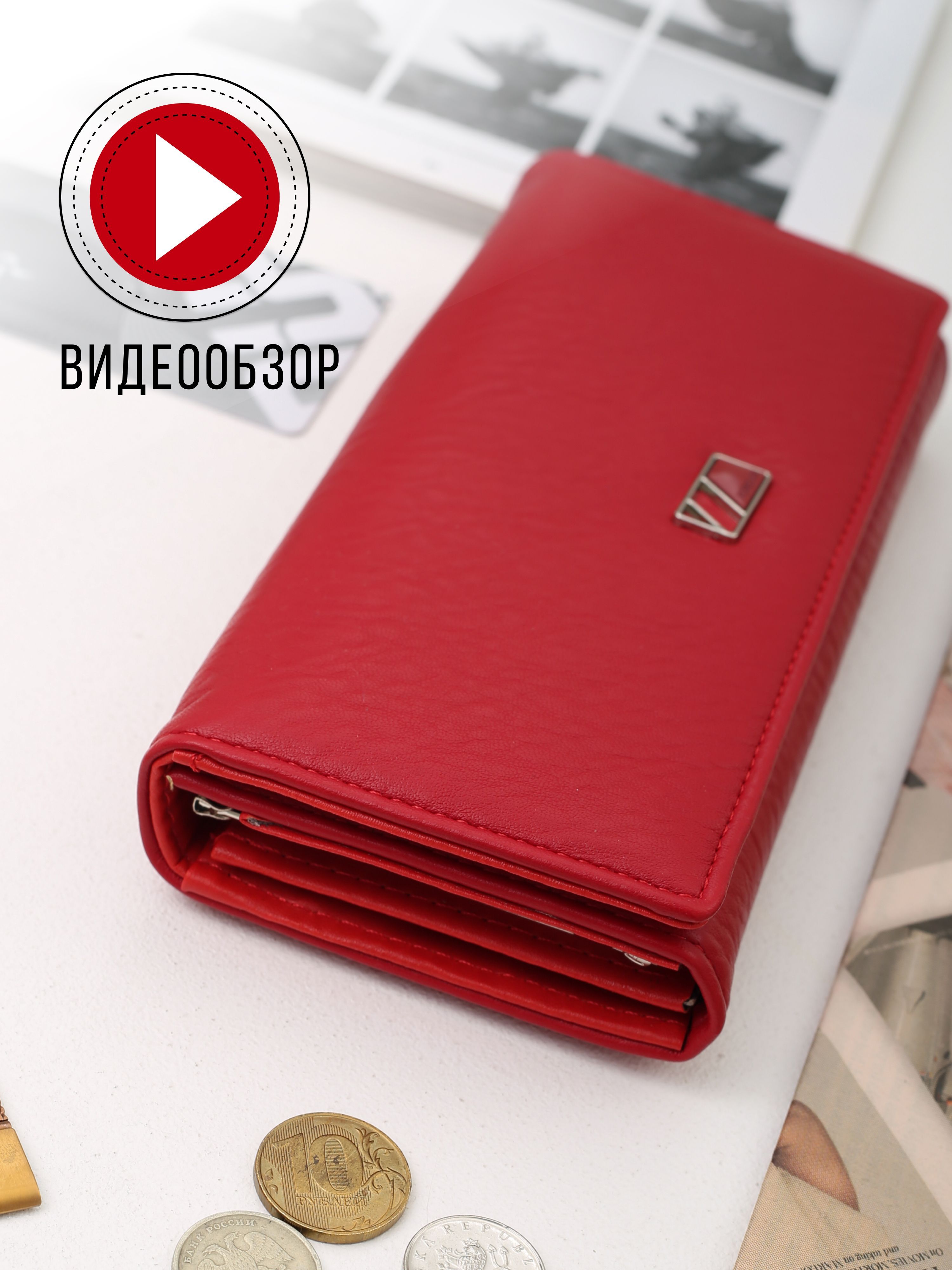 Кошелек женский кожаный красный на молнии Habastore портмоне женское, бумажник большой тонкий
