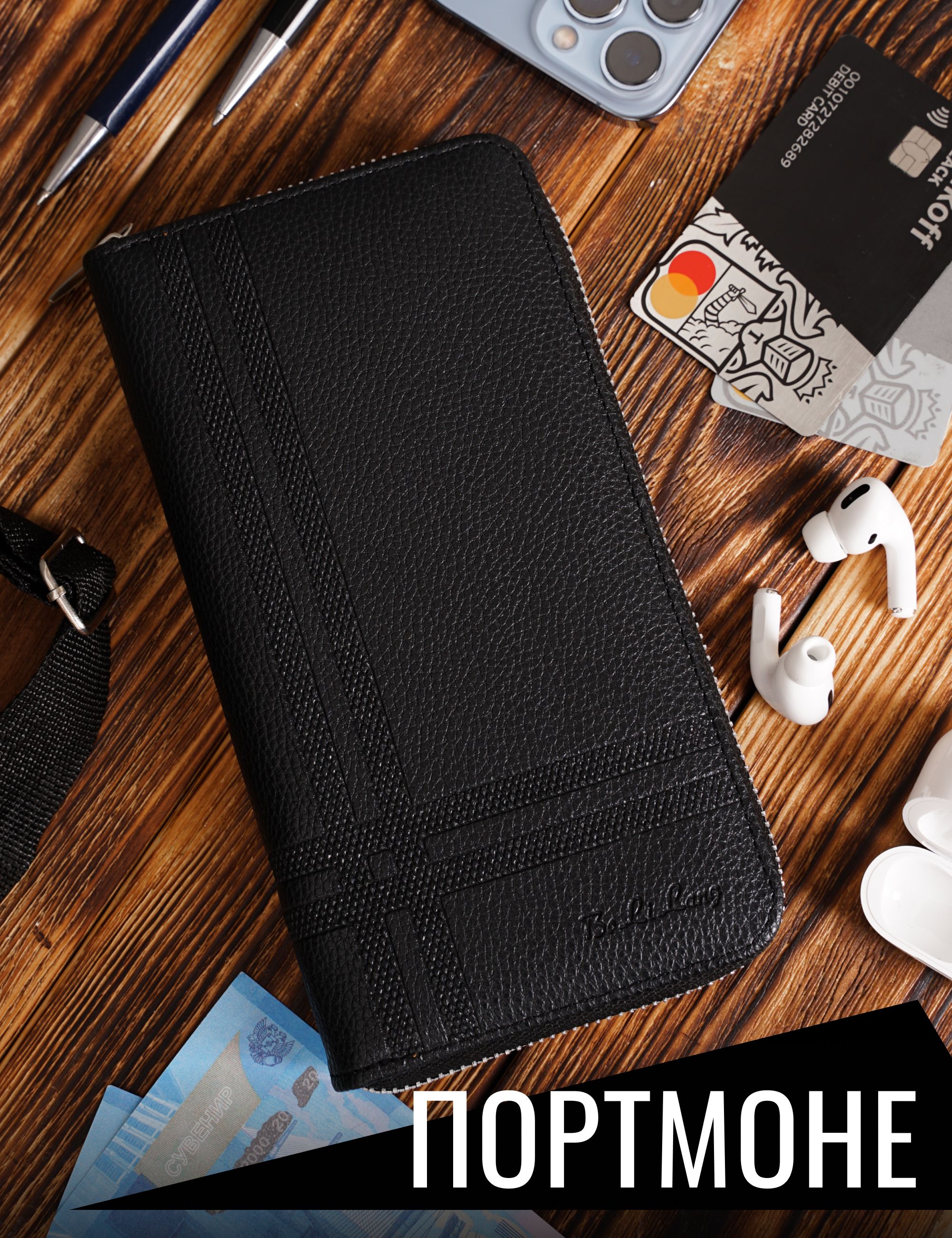 Кошелек мужской кожаный Habastore бумажник для мужчин, портмоне для карт, документов, для документов и денег, черный