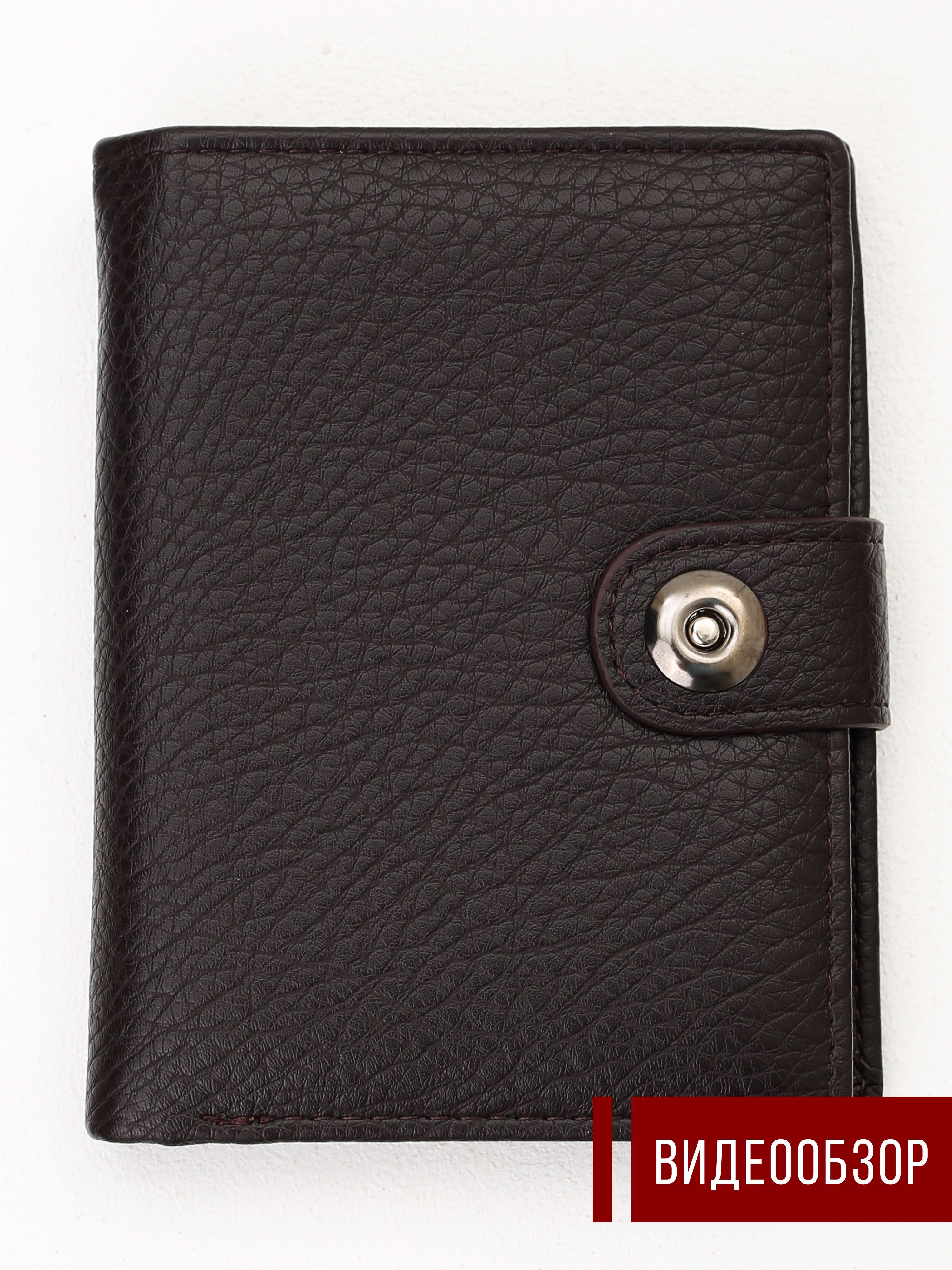 Кошелек мужской кожаный Habastore бумажник для мужчин из экокожи, портмоне для документов, карт, автодокументов и денег, коричневый