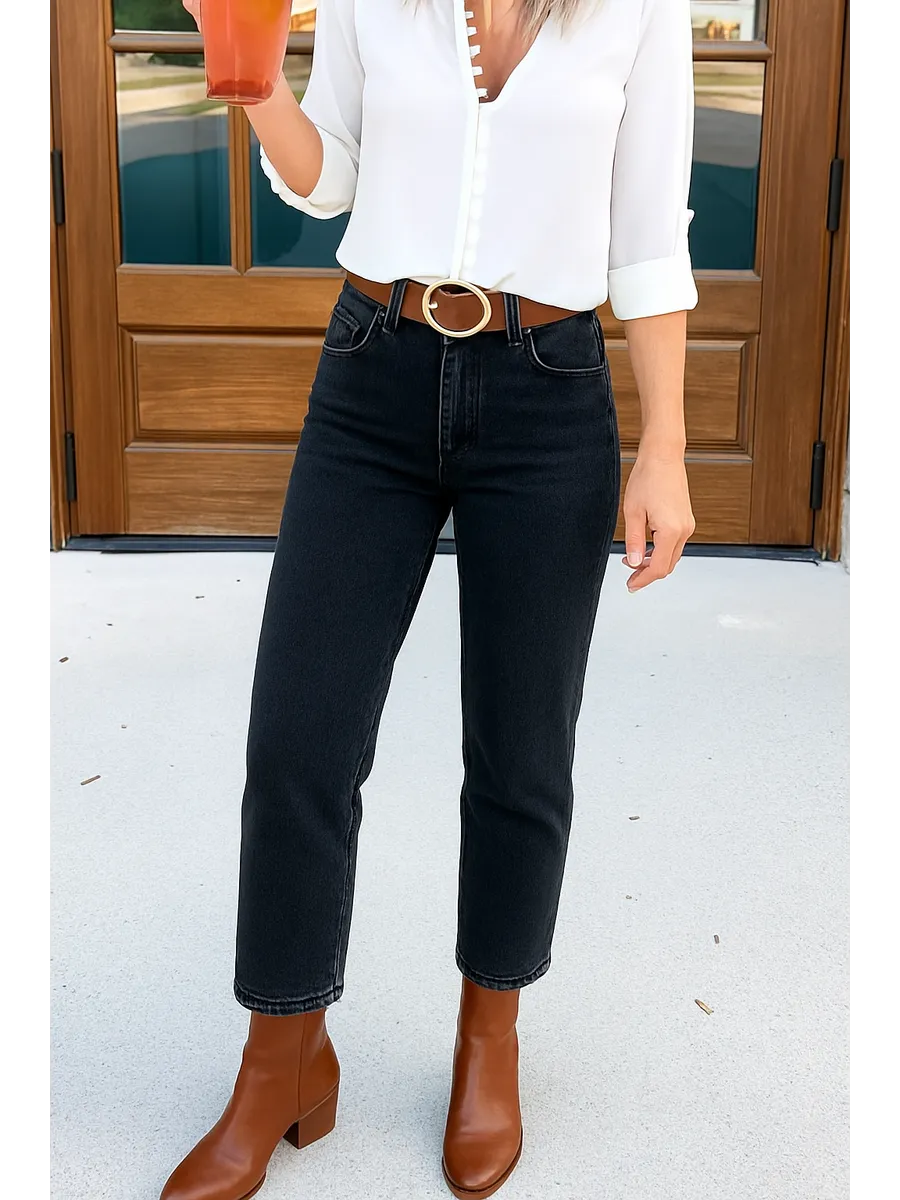 Джинсы женские черные mom fit с высокой посадкой хлопок