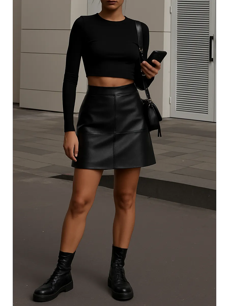 Юбка женская кожаная короткая мини