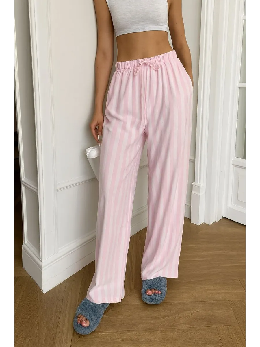 Брюки женские домашние хлопок розовые в полоску