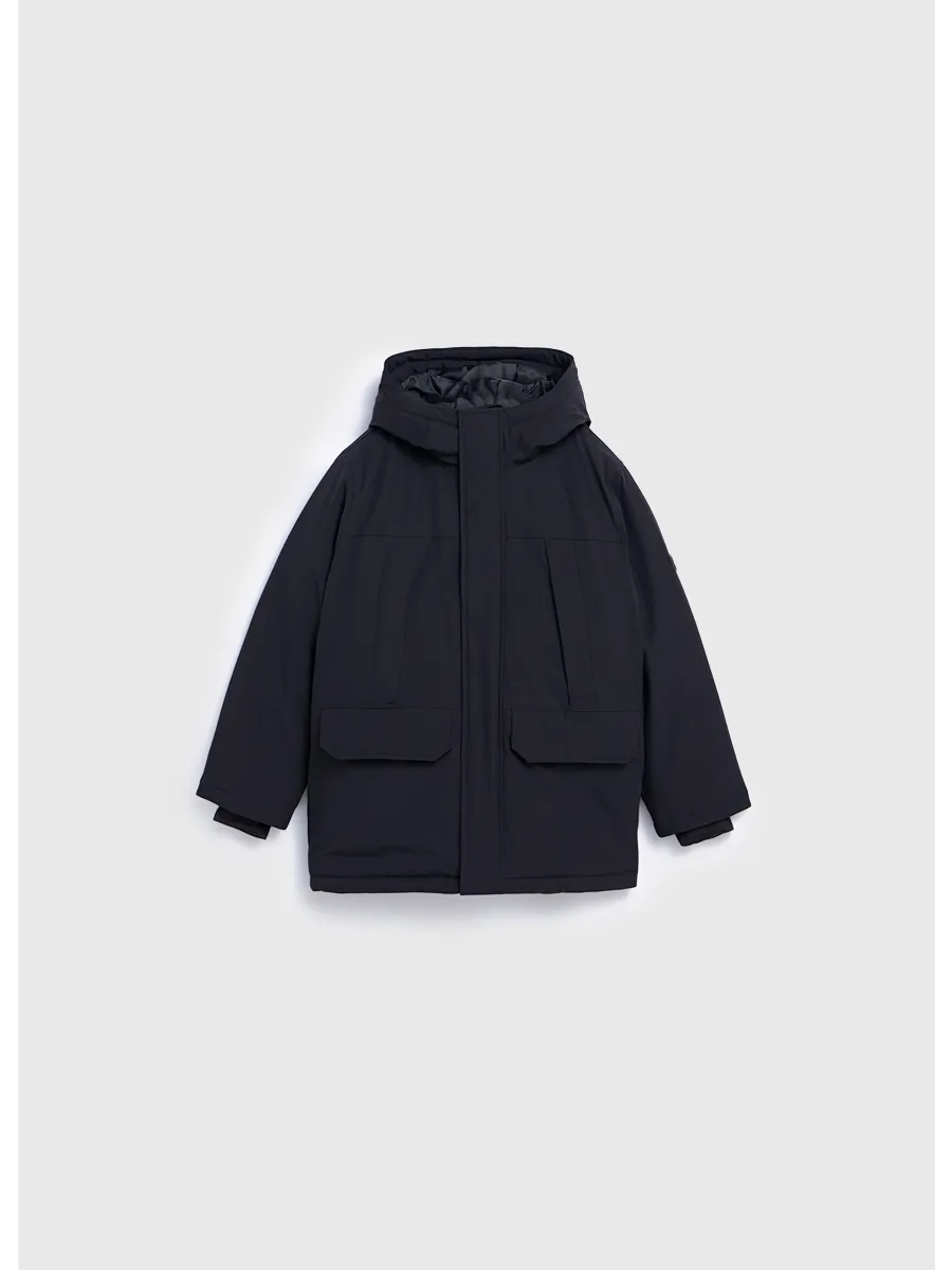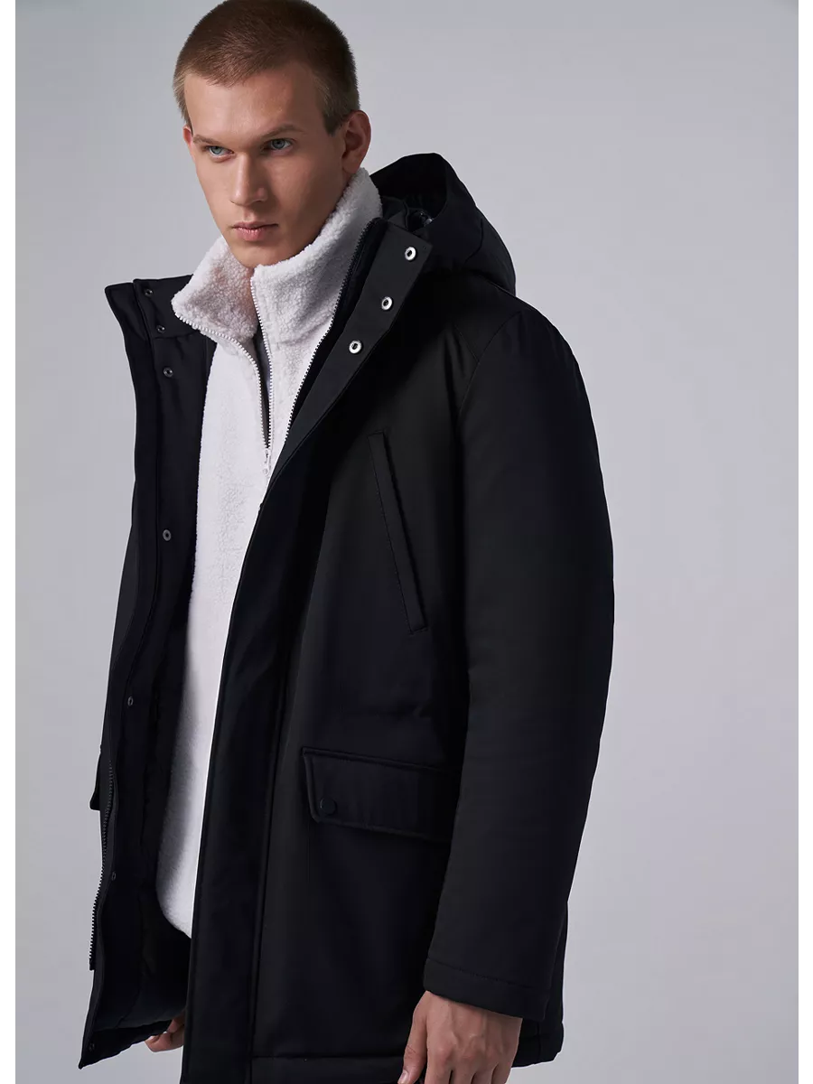 Утепленная куртка парка на молнии с капюшоном