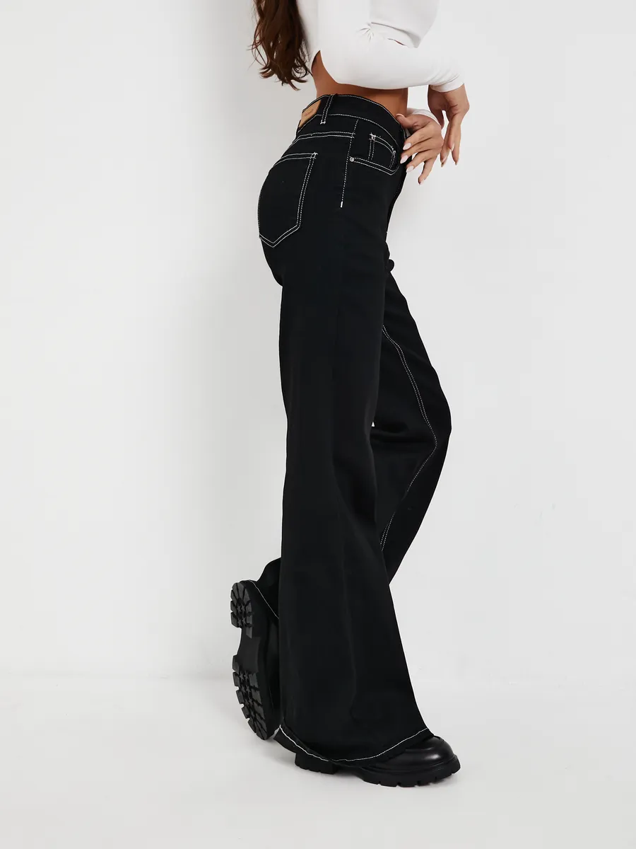Джинсы широкие прямые палаццо высокая посадка
