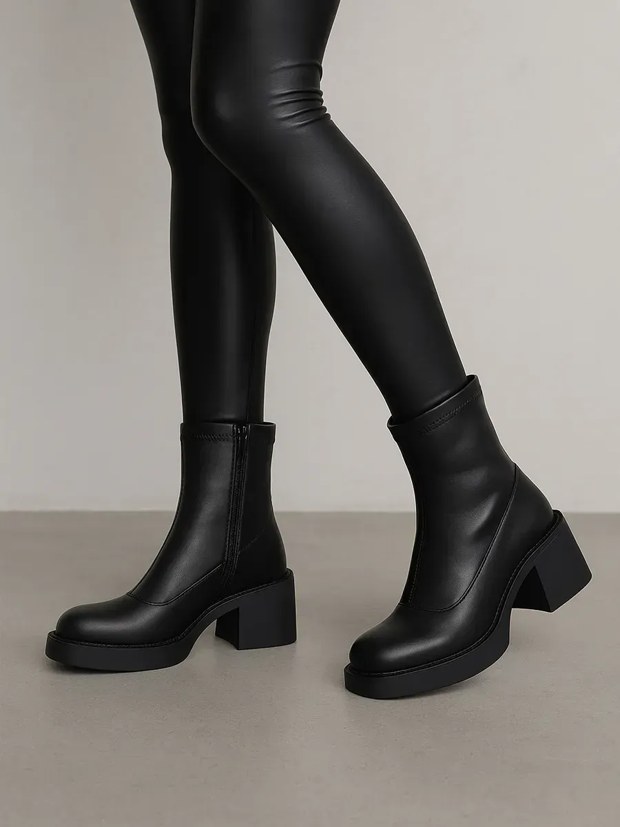 Сапоги трубы на каблуке